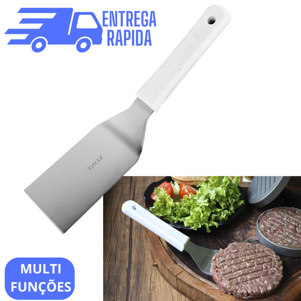 Kit 2 Espátula Chapeiro Profissional Curva em Aço Inox 3 polegadas- Cozinha Burger Churrasco