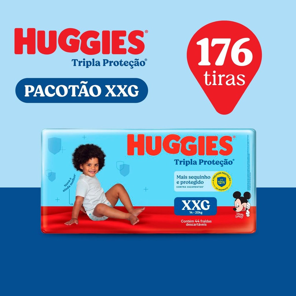 Pacotão Fralda Huggies Tripla Proteção XXG 176 Unidades