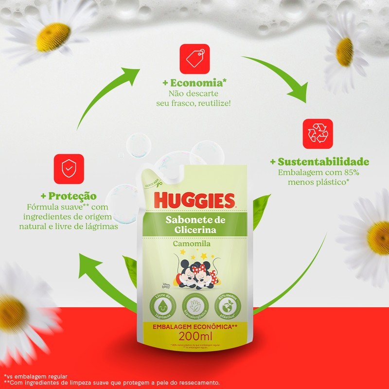 Sabonete Líquido Huggies Refil Camomila Seguro para Recém-Nascidos 200ml