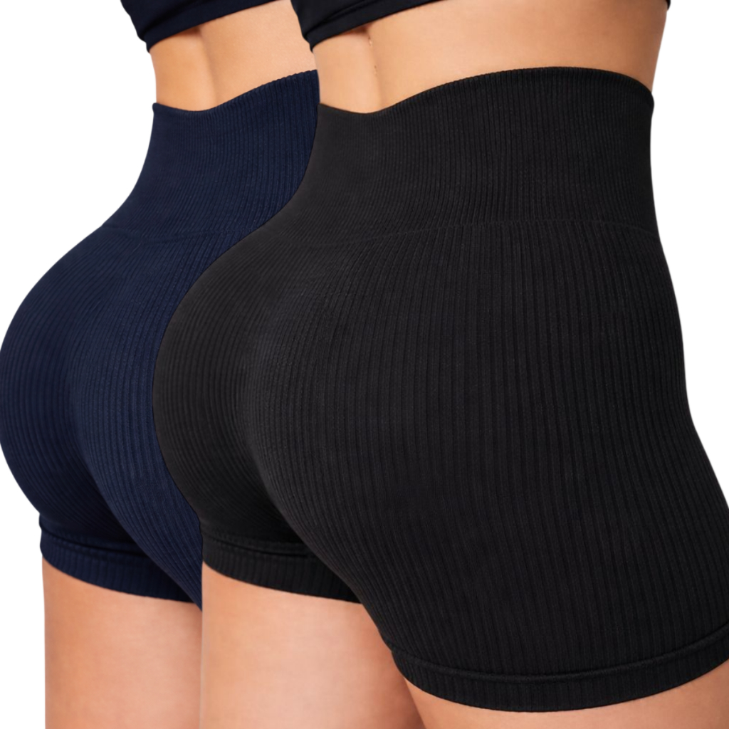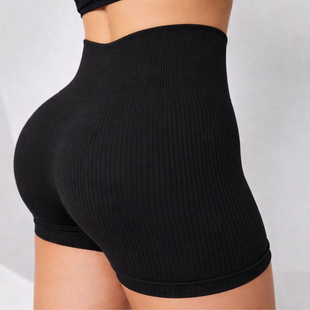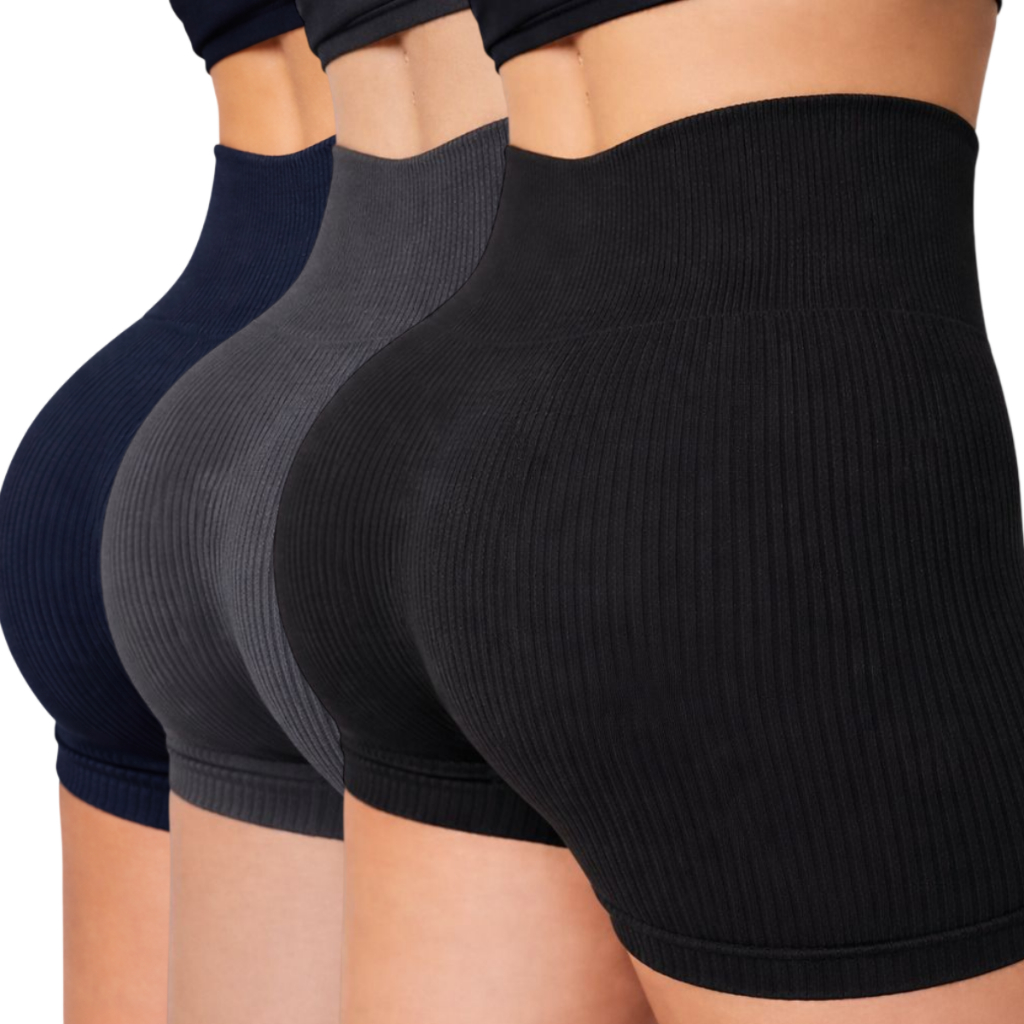 Kit 1/2/3 Short Feminino Fitness Cintura Alta Canelado Secagem Rápida Zero Transparente Esportivo