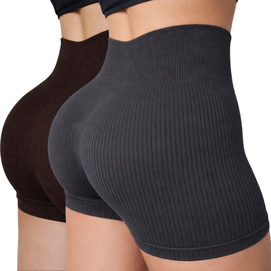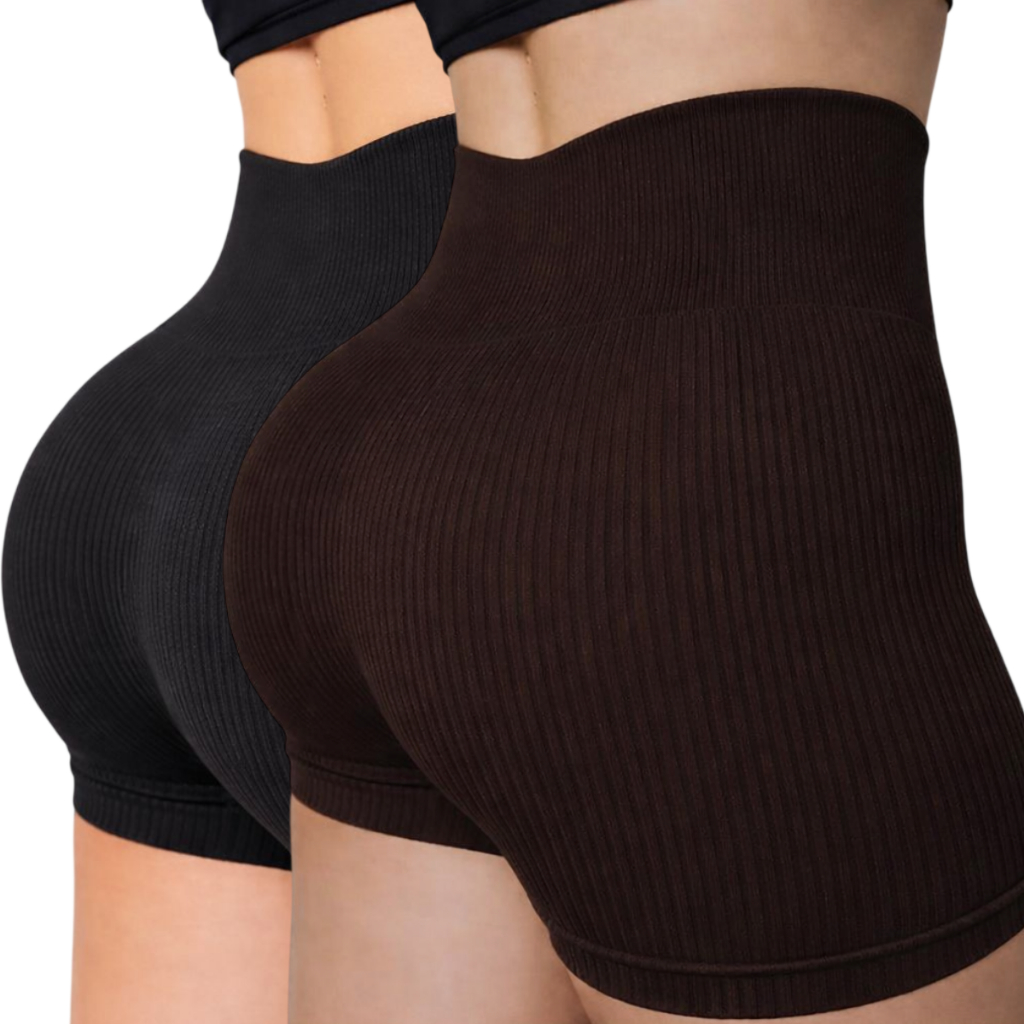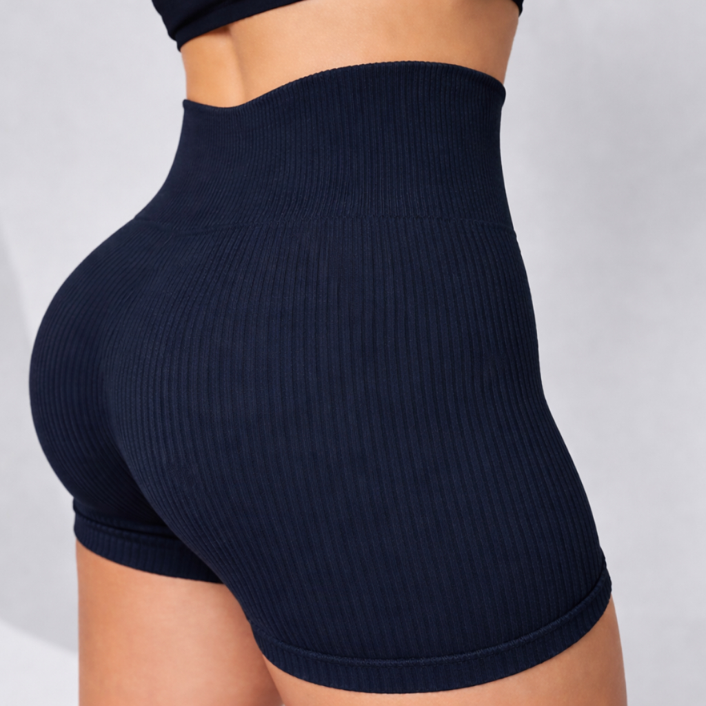 Kit 1/2/3 Short Feminino Fitness Cintura Alta Canelado Secagem Rápida Zero Transparente Esportivo