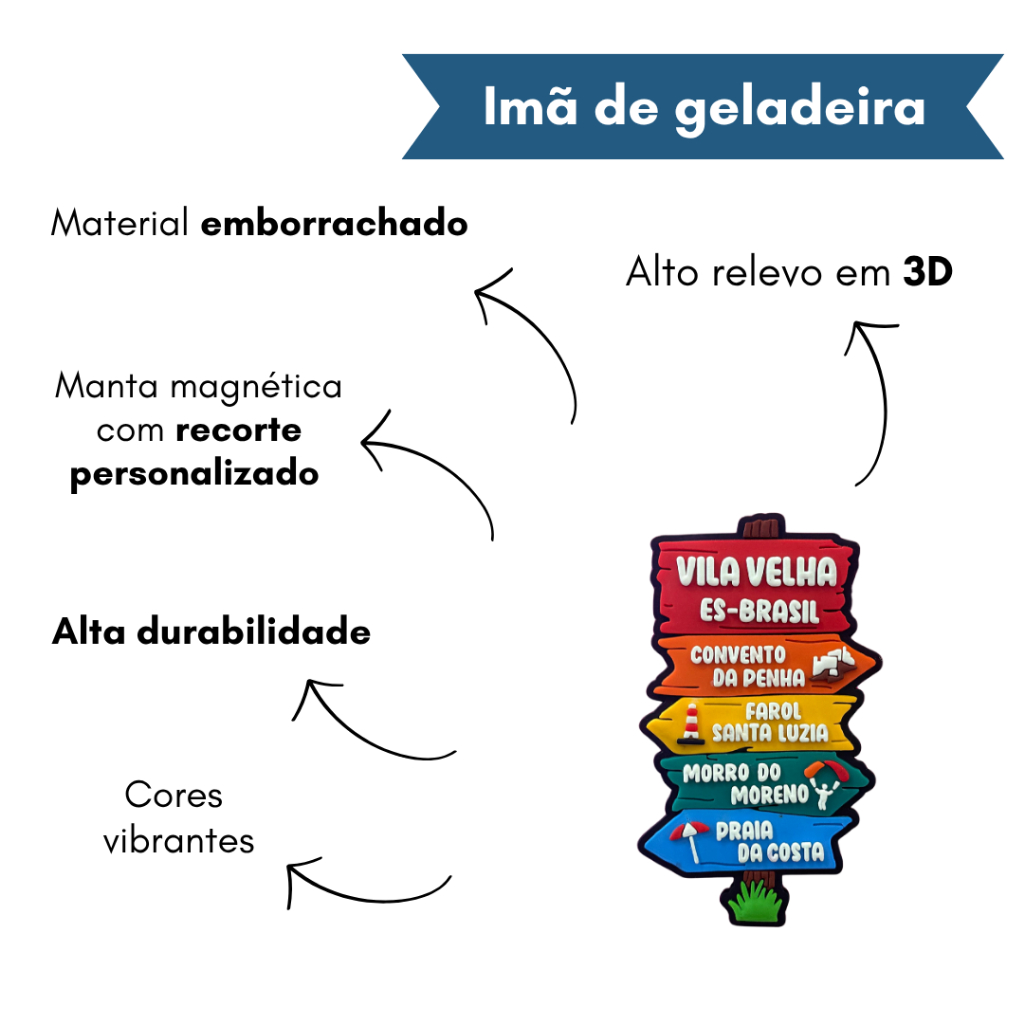 Imã de Geladeira Emborrachado Vila Velha ES Plaquinhas - Lembrança Convento da Penha Praia da Costa