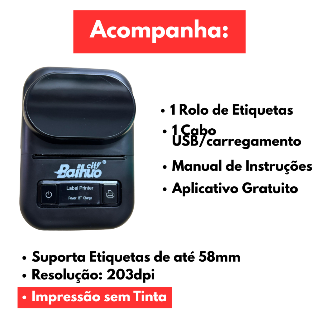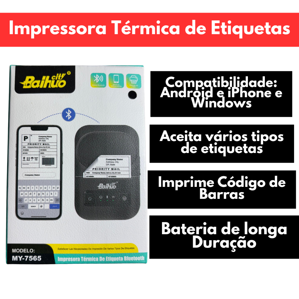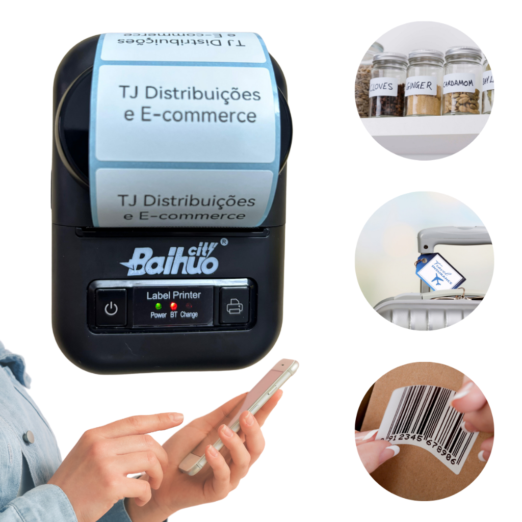 Impressora Térmica de Etiquetas Adesivas Bluetooth Portátil Código de Barras Etiquetadora