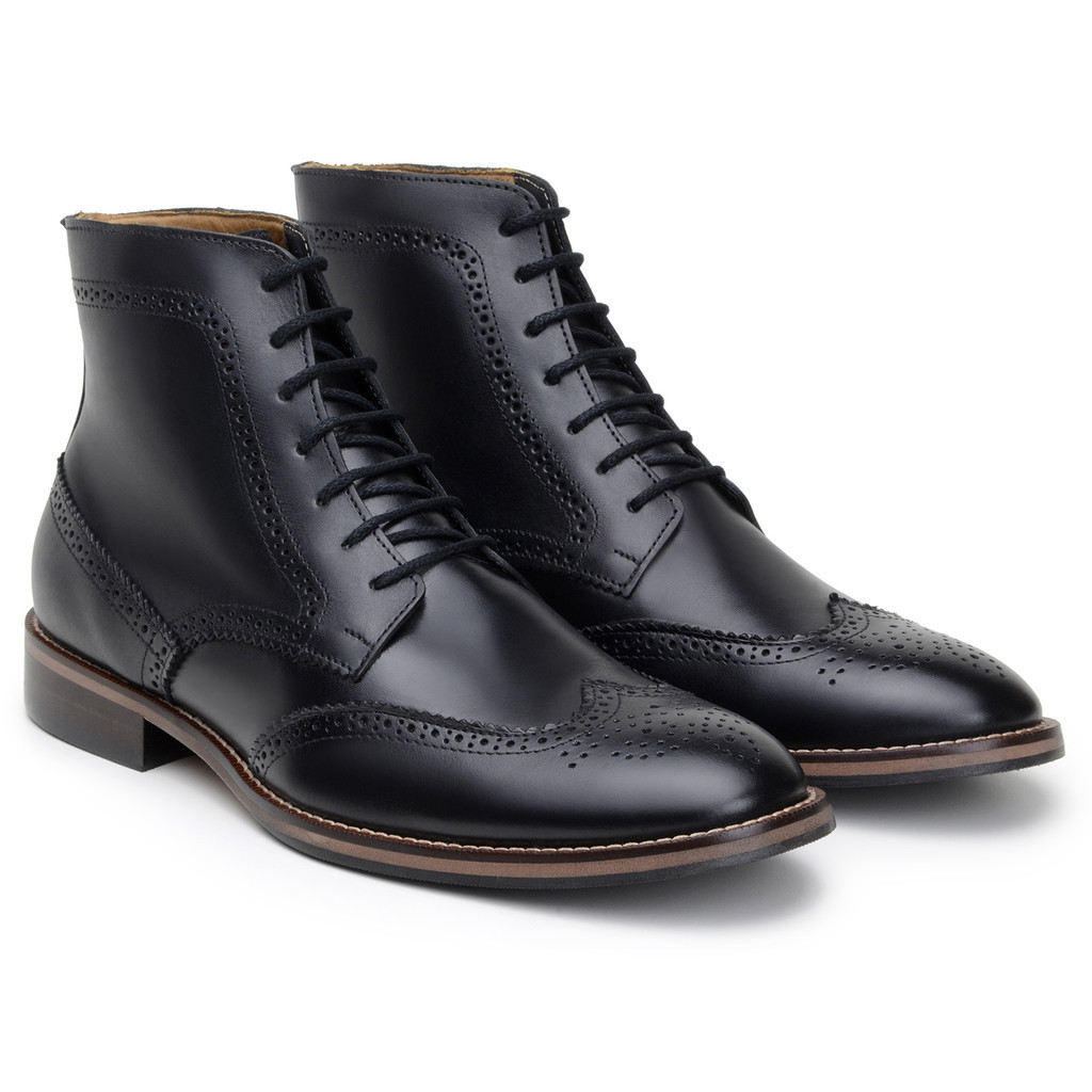 Bota Masculina Oxford Brogue Couro Preto