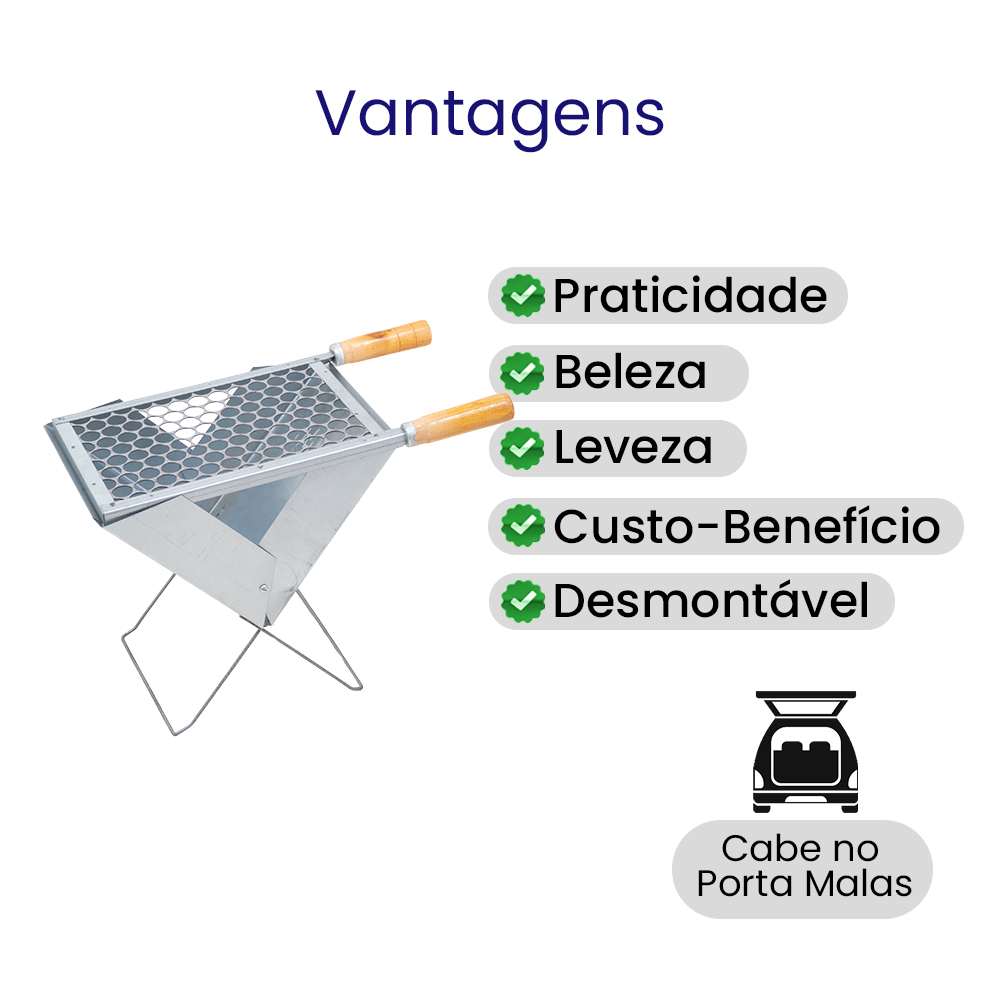Churrasqueira Dobrável Portátil Maleta A Carvão