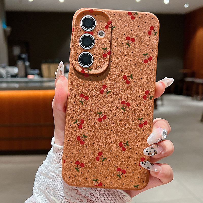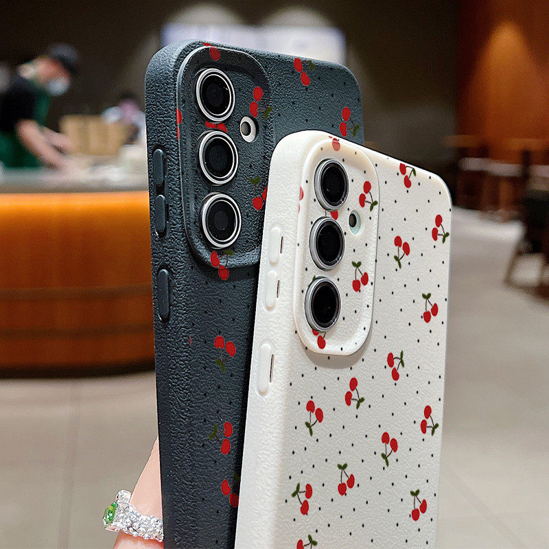 Cereja Padrão Textura De Couro Macio TPU Caso Para Samsung Galaxy S25 S24 S23 S22 Ultra Plus S21 S20 FE Telefone Enseada