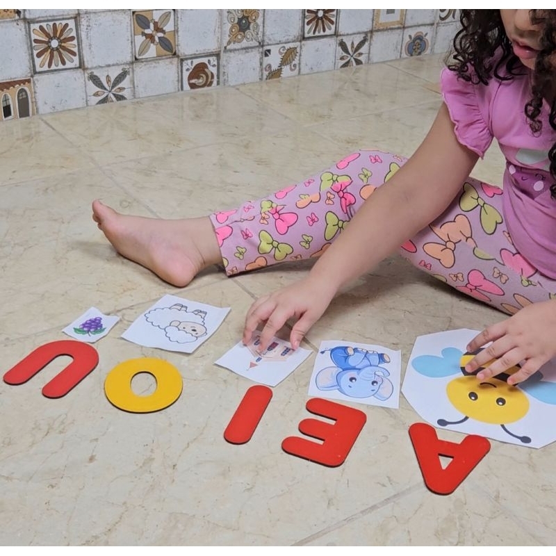 Alfabeto Jumbo Grande MDF - Letras Coloridas para Educação Infantil com Caixa