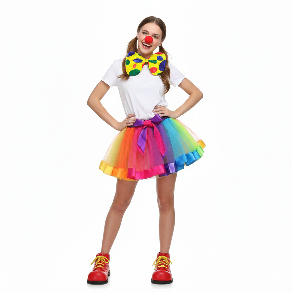 Kit Fantasia Palhaça Saia Tule Colorida Gravata Palhaço Nariz Fantasia Completa Feminina