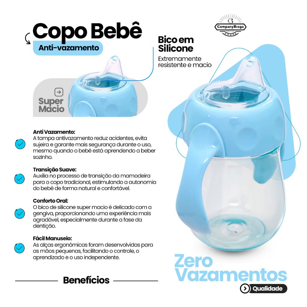 Copo Para Bebê Anti-vazamento Com Alça Bico Silicone Super Macio E Tampa Buba