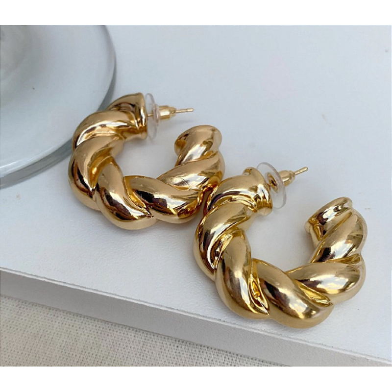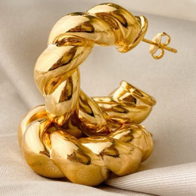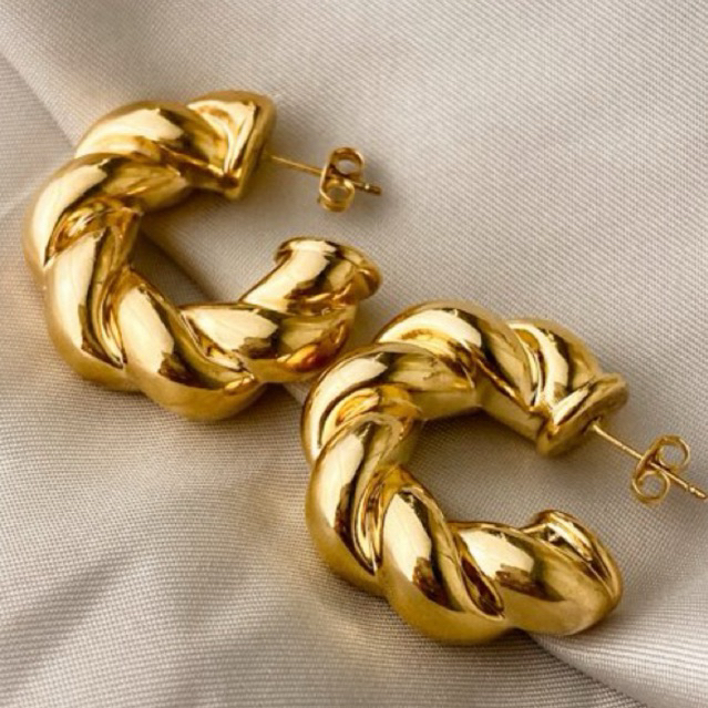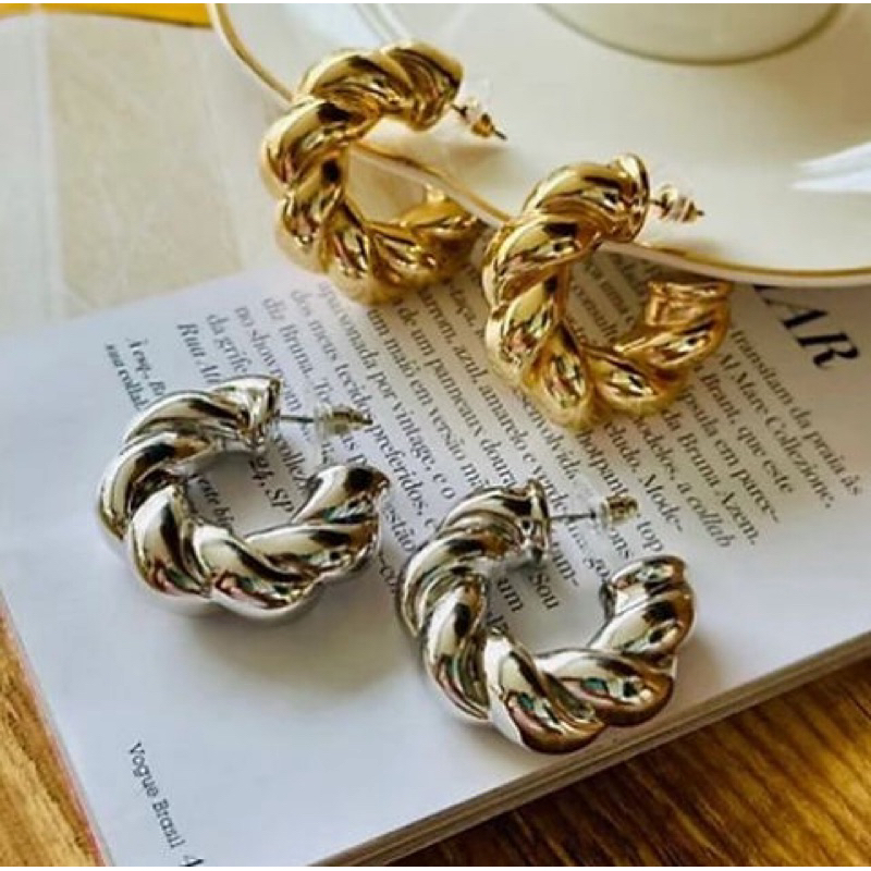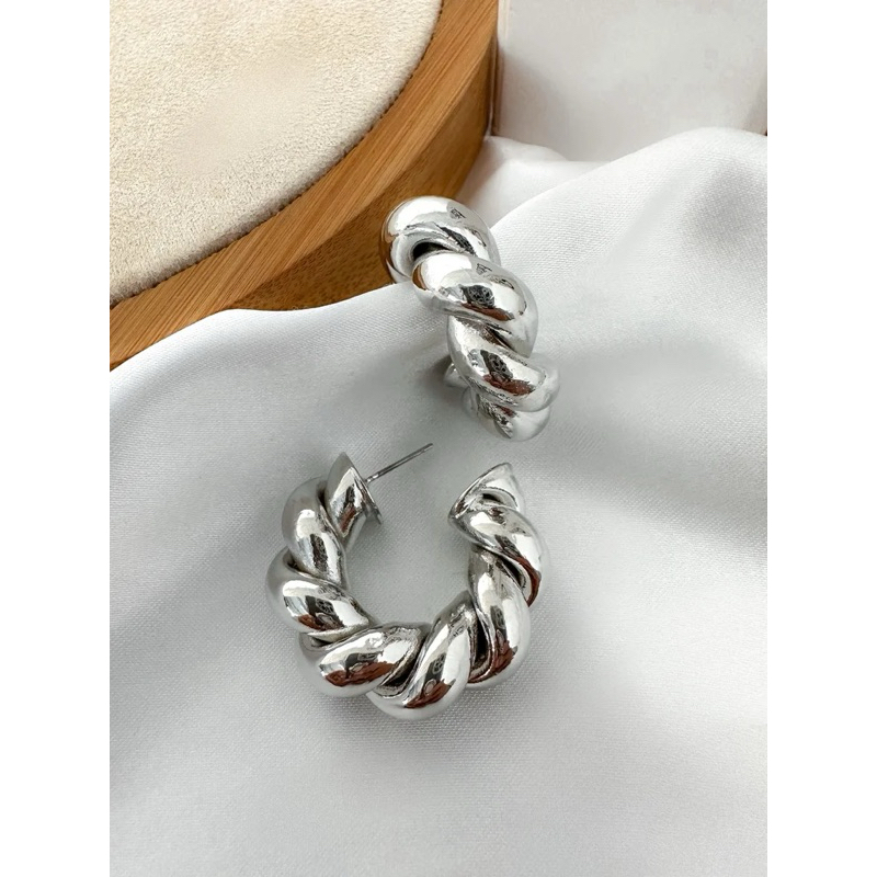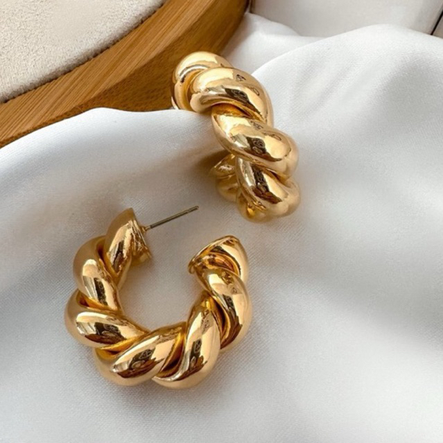 Argola Torcida Trançada Croissant Dourado ou Prata