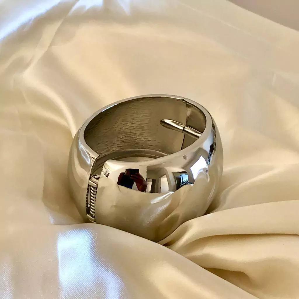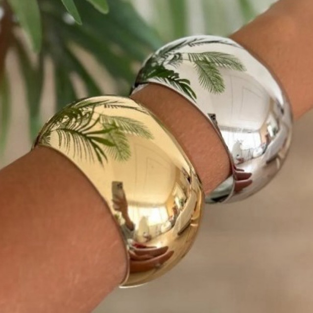 Bracelete Grosso Articulado em Metal Texturizado Pulseira Maxi