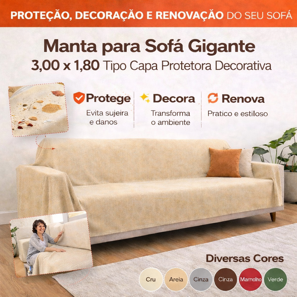 Manta 3,00 x 1,80M Para Sofá King Luxo Gigante 100% Algodão Protetor Decoração