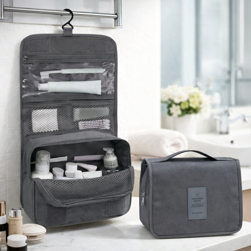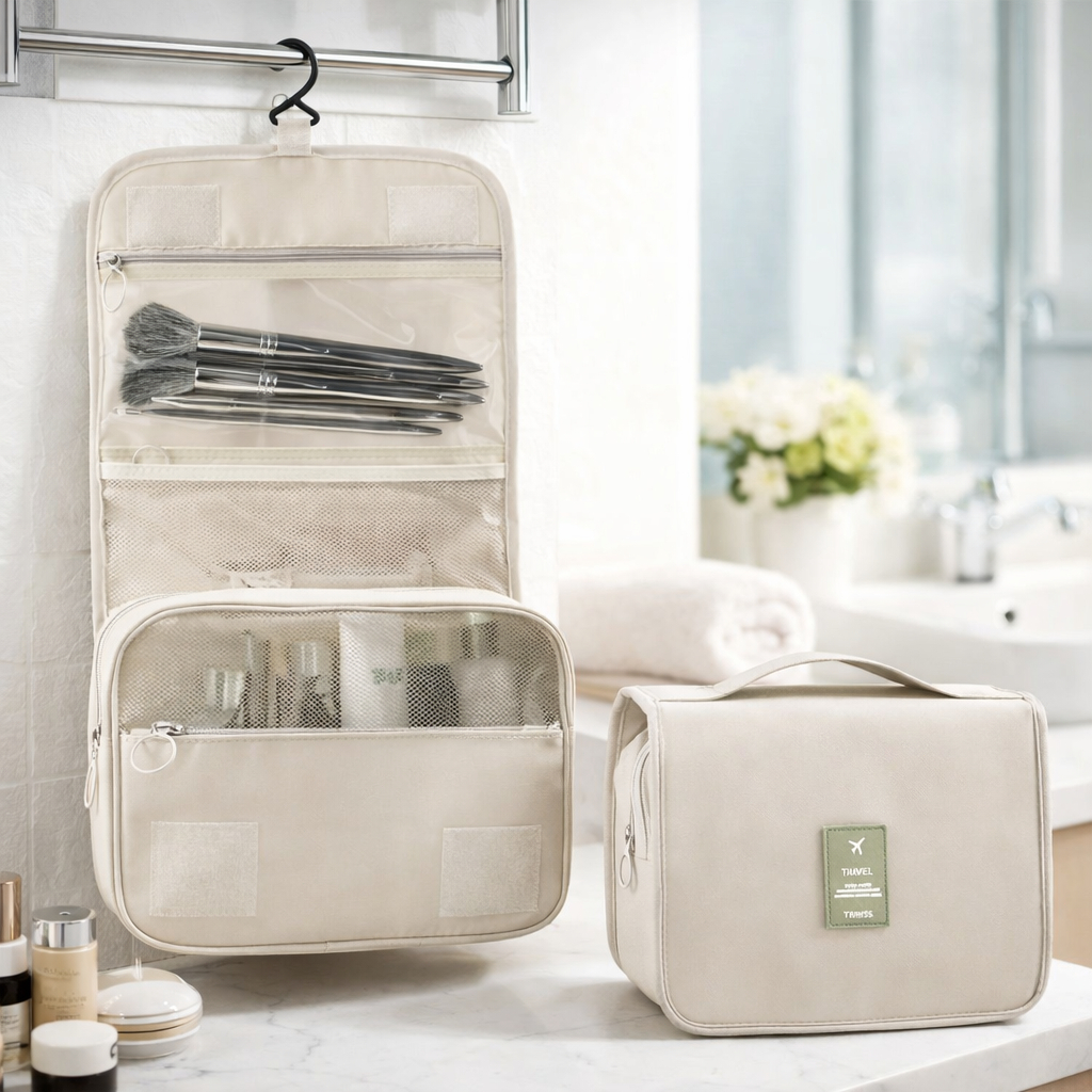 Necessaire Organizadora de Maquiagem Impermeável com Gancho, Bolsa de Cosméticos com Zíper para Viagem e Academia