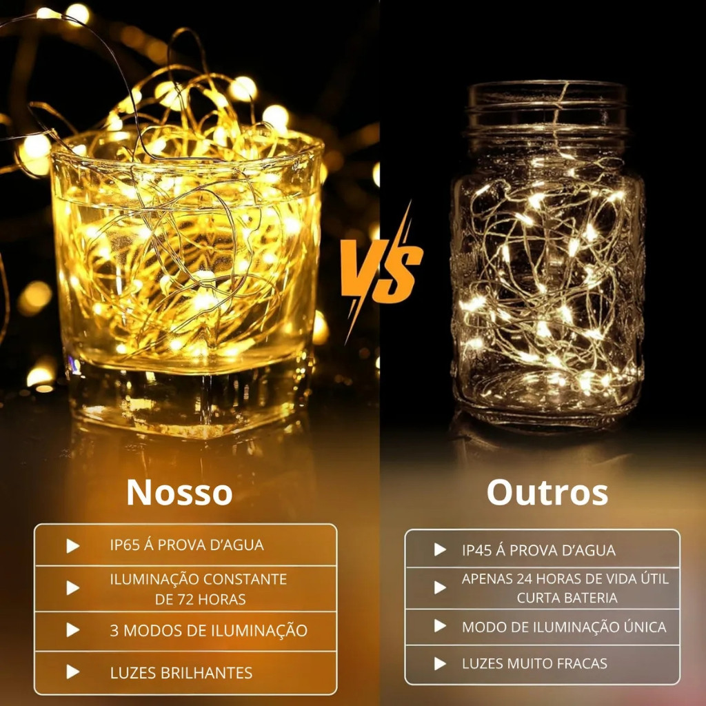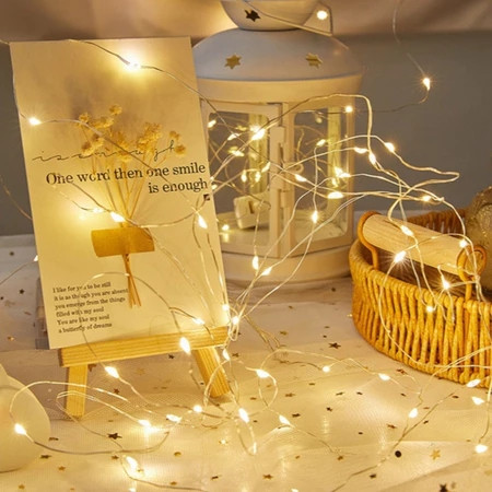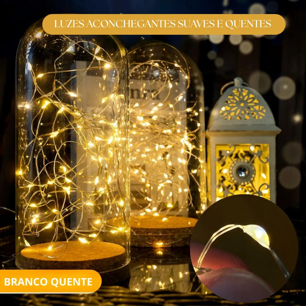 Cordão de Luzes LED 20 Lâmpadas 2m Quente 3 Modos Pilha Fio de Cobre Decoração de Natal Festas e Ambiente