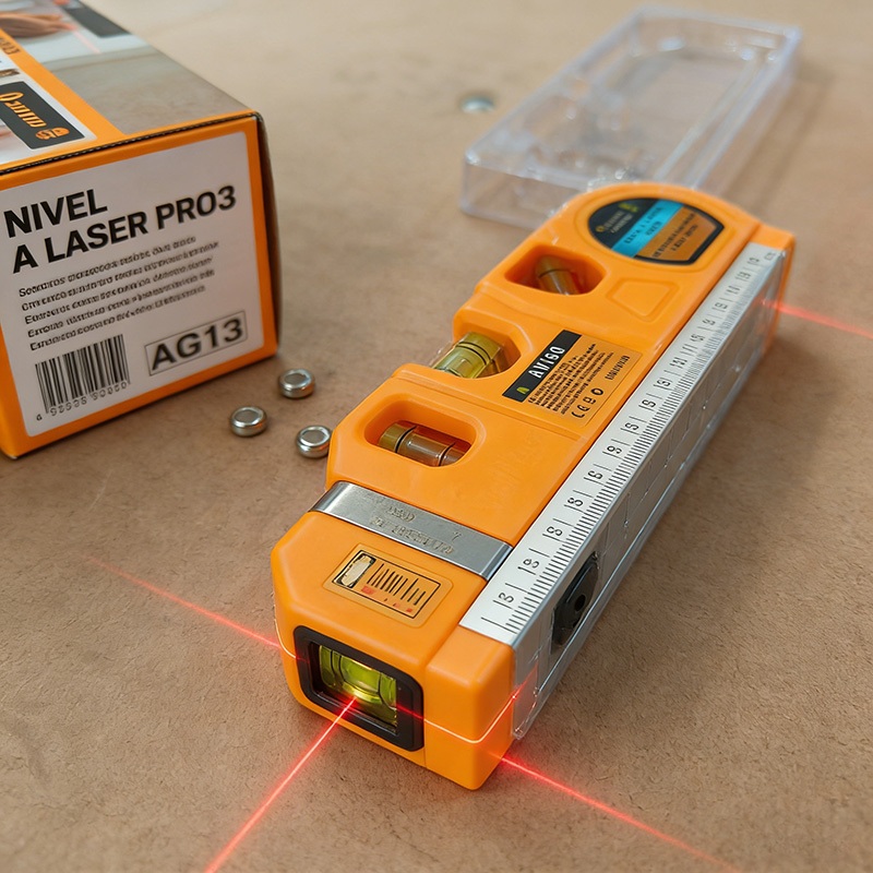 Nível a Laser Portátil com Trena Horizontal Vertical com 4 Bolhas de Nível Multifuncional