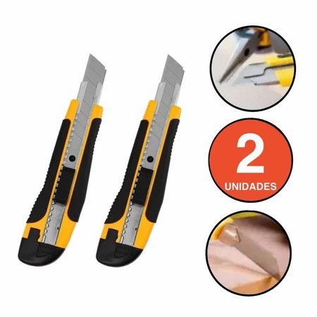 Estilete Profissional com Trava de Segurança Emborrachado Corte Preciso com Lâminas