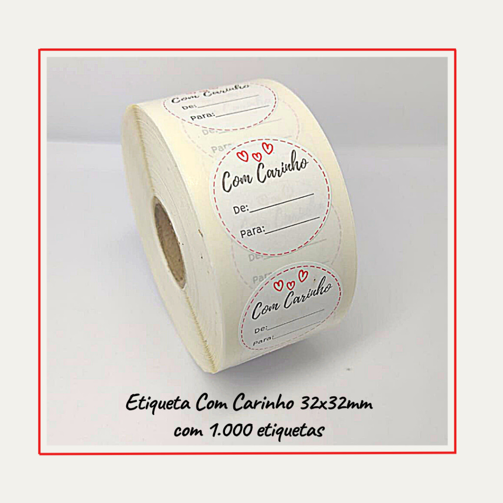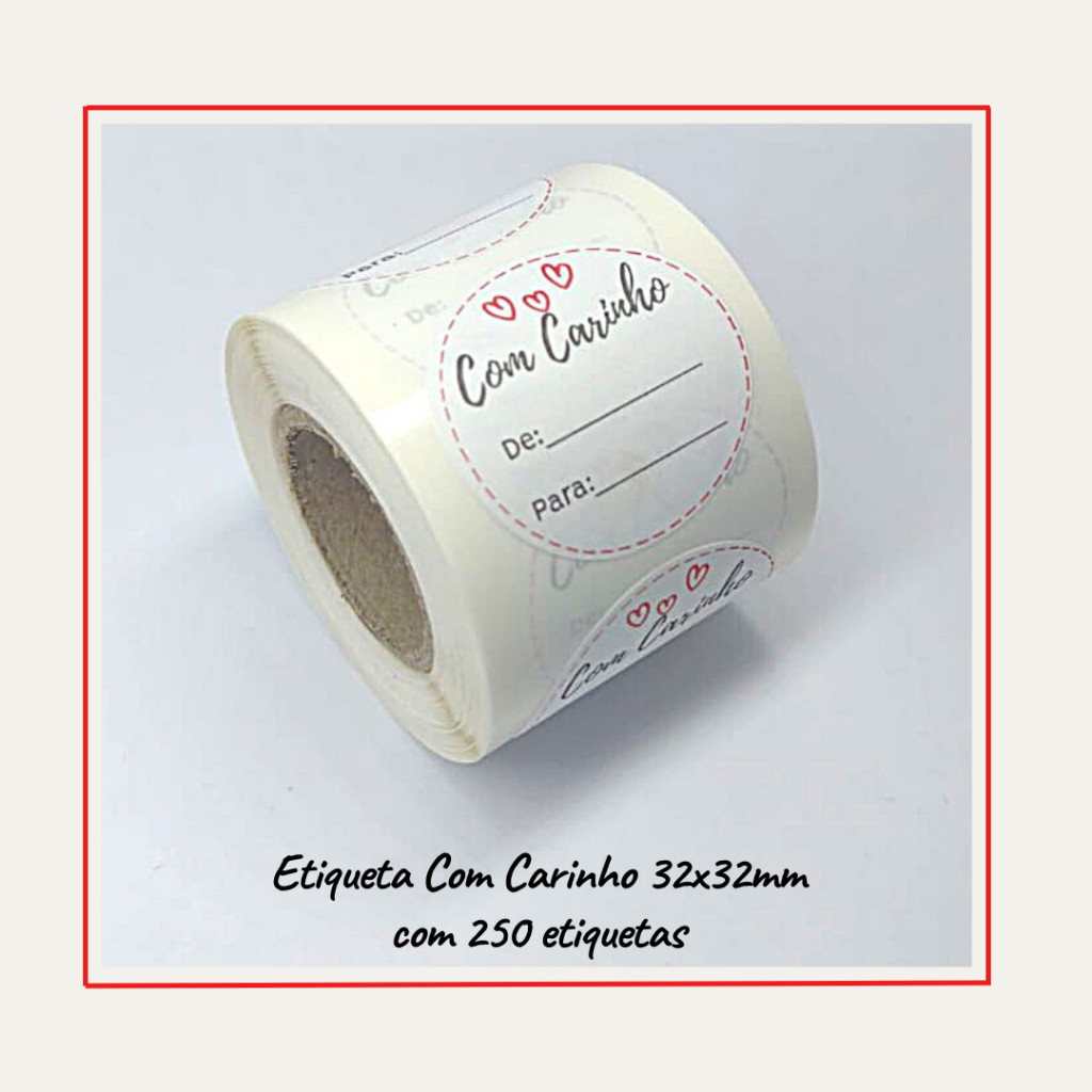 Etiqueta Adesiva Dedicatória De Para Presente Delivery Com Carinho 4Cm