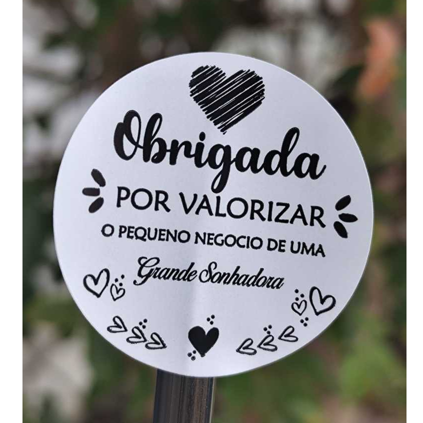 Etiqueta Adesiva Obrigada por valorizar O Pequeno negócio de uma grande sonhadora 4cm