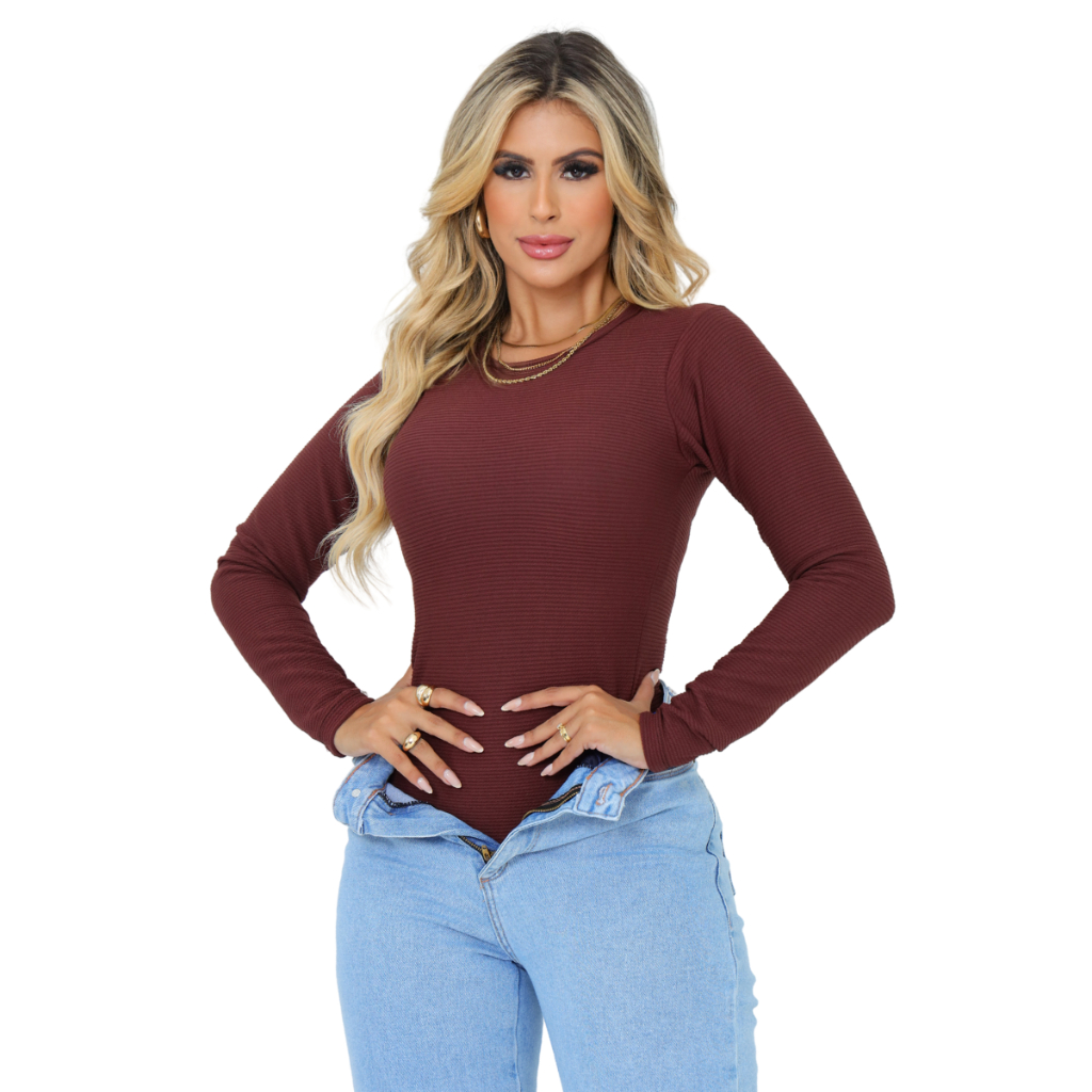 Body Manga Longa Moda Gringa Básico Casual Trabalho Festa Paty