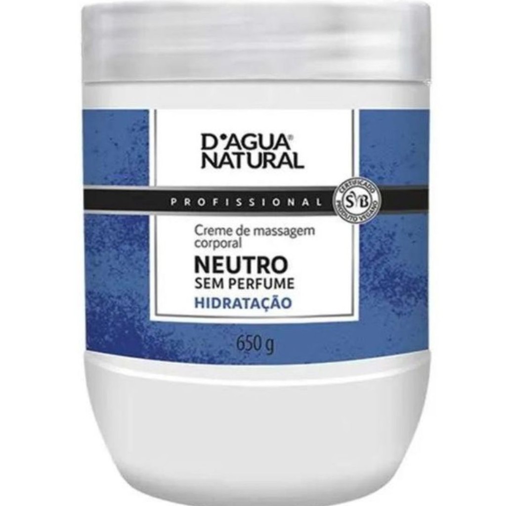 Kit 3 Cremes de Massagem Corporal Neutro Sem Perfume D´agua Natural 650G