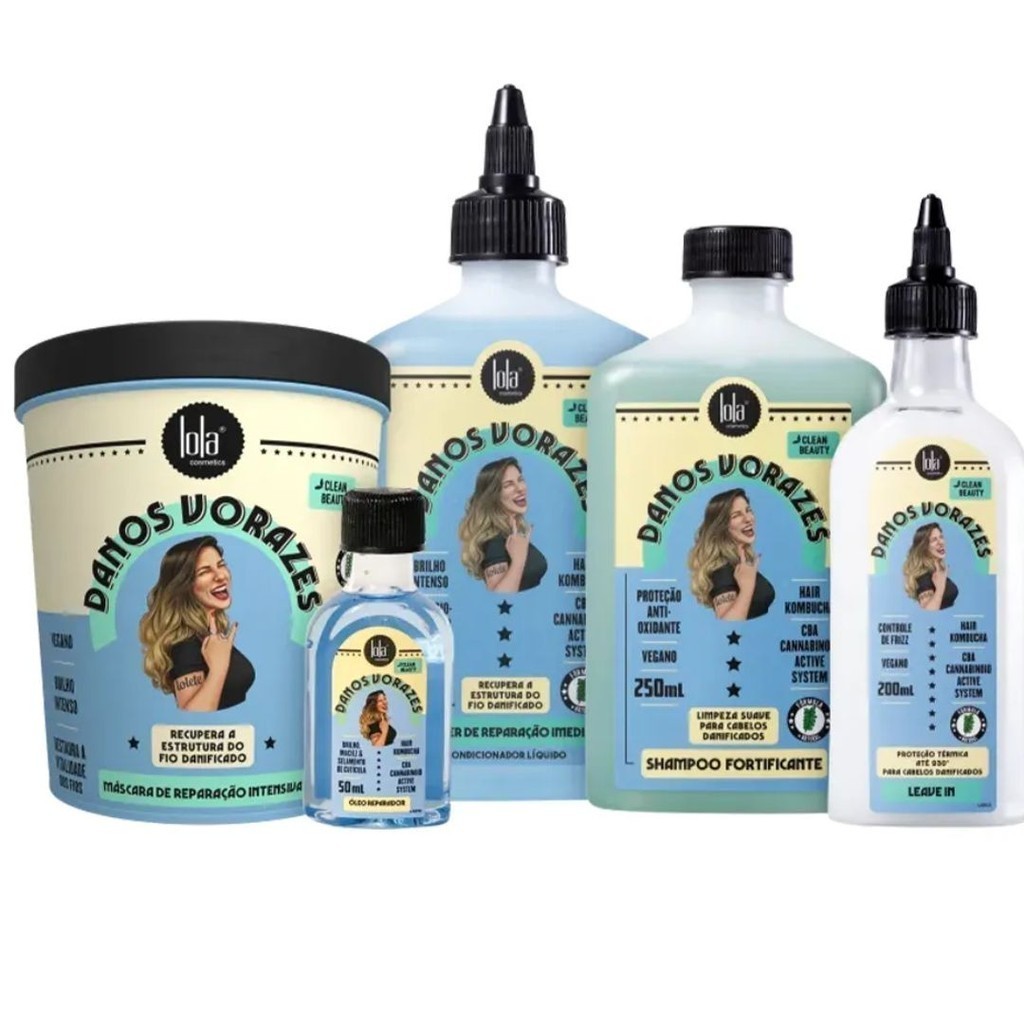 Kit 5un Danos Vorazes - Shampoo250ml + Booster250ml + Máscara450g + Leave-In200ml + Óleo50ml