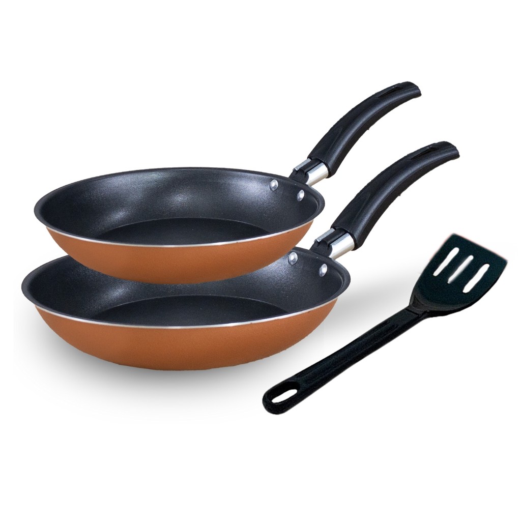 Conjunto Kit 2 Frigideiras Francesas Antiaderente Teflon + Espátula Nylon Grátis Várias Cores