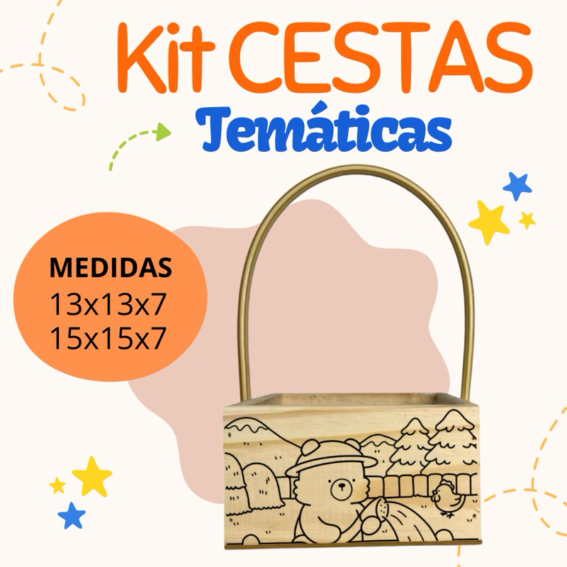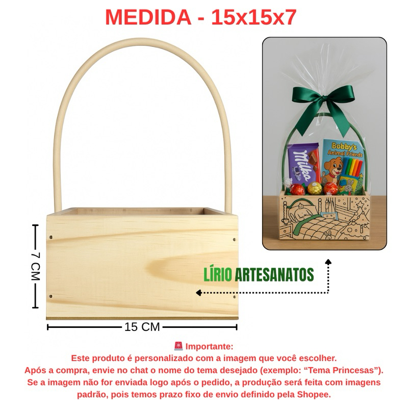 Kit 10|20|30 Cestinha Criativa Temáticas de Madeira com Doces – Para Colorir Aniversário/Dia das Crianças