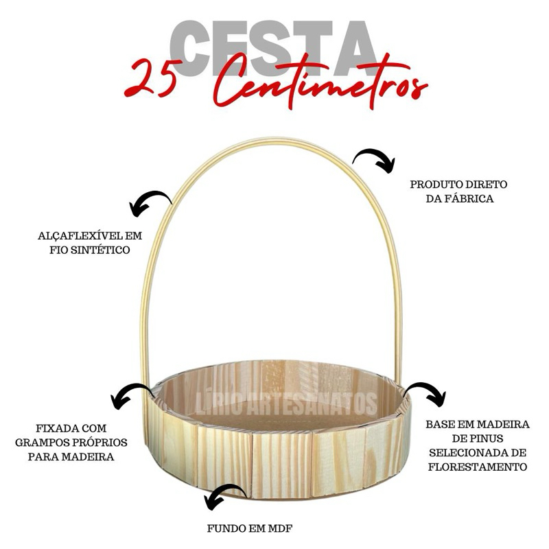 kit 20 Cestas de Madeira 25 Centímetros Oval ou Redonda - presentes|comemorações|páscoa|embalagem