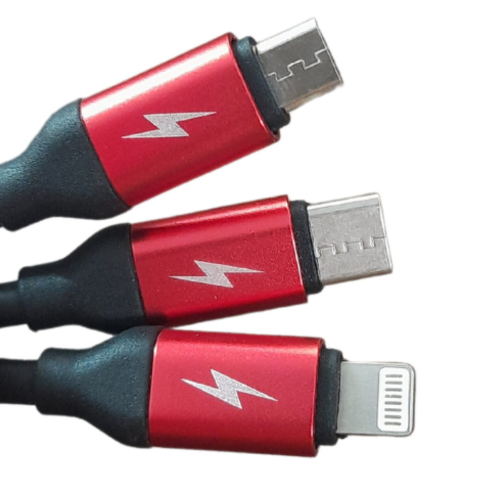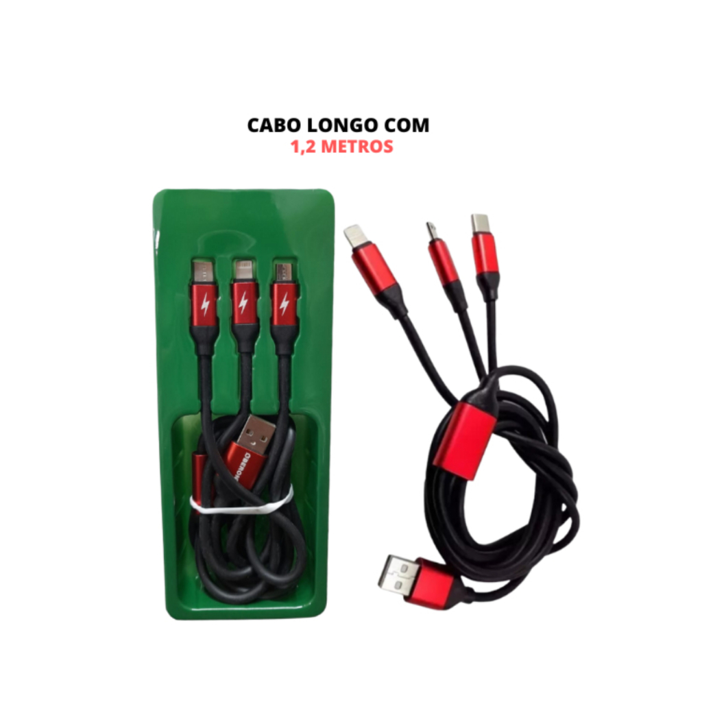 Cabo USB 3 EM 1 Linghtning Type C V8 1,2 Metros para Celular OBERON