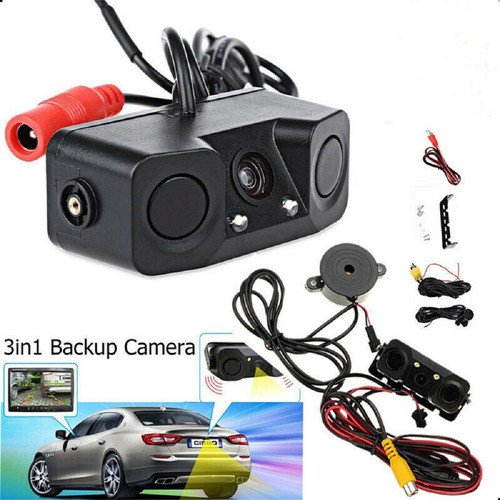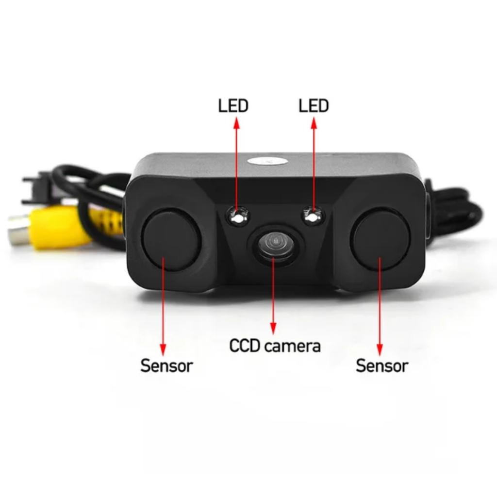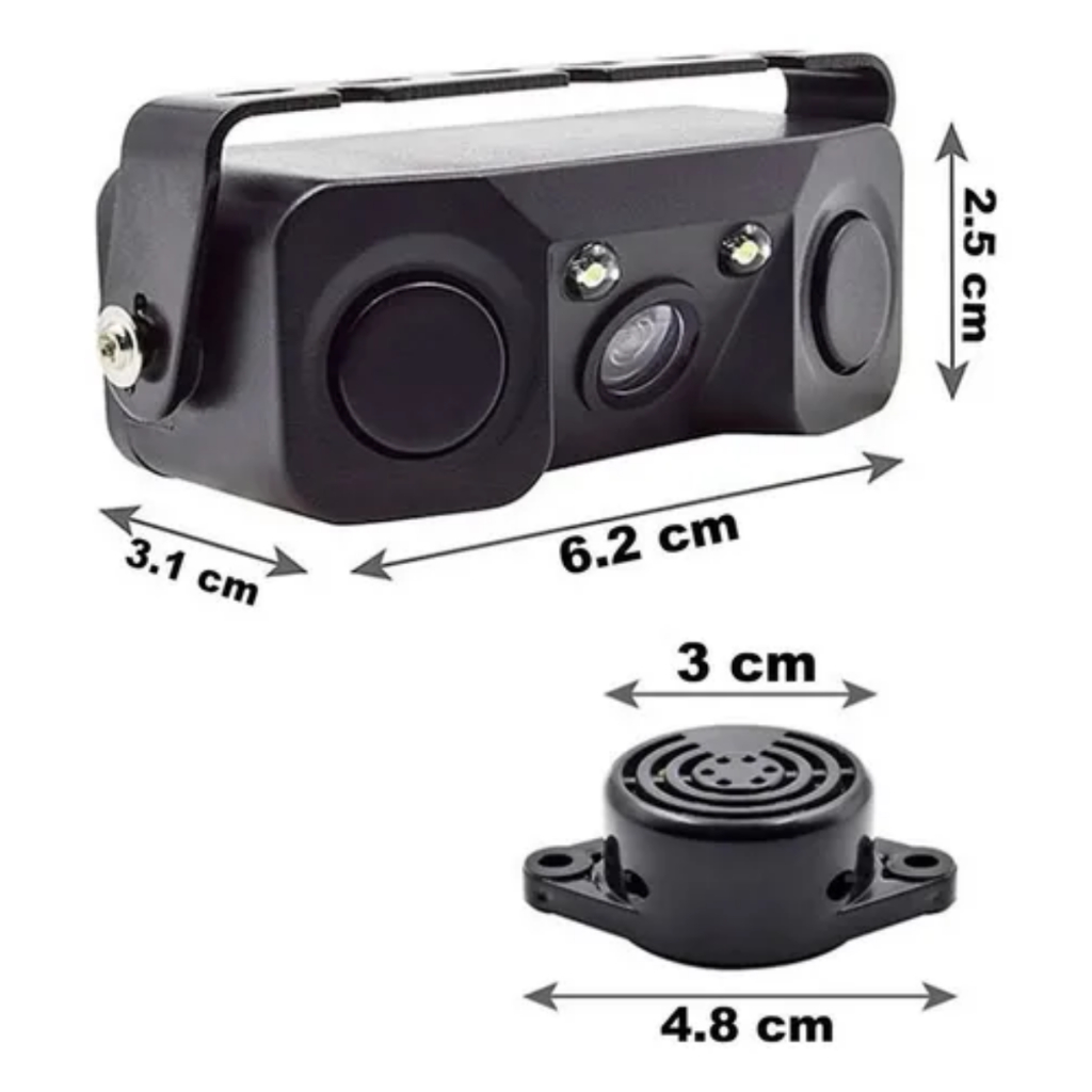 Câmera De Ré Com Sensor Estacionamento 2 Pontos Visão Noturna Beep Alerta Sonoro Aproximação Manobra