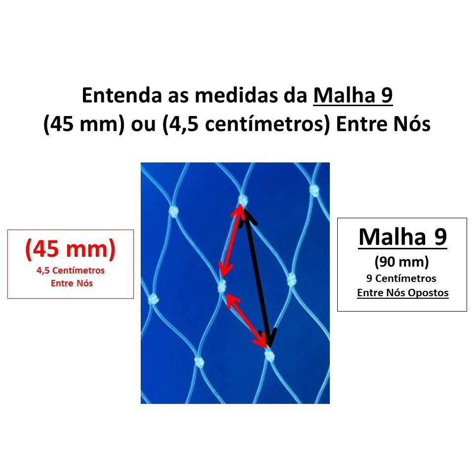 Pano de Rede Malha 9 (45mm) Fio 0,25 Altura 2,25 C/ 100 Metros Panagem 25x45x25x100