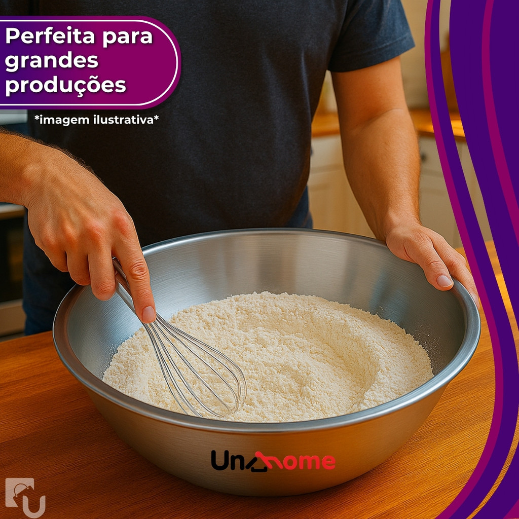 Bacia Bowl de Inox Uny Home 40cm 10L Grande Redonda Ideal Para Cozinha Restaurante e Confeitaria