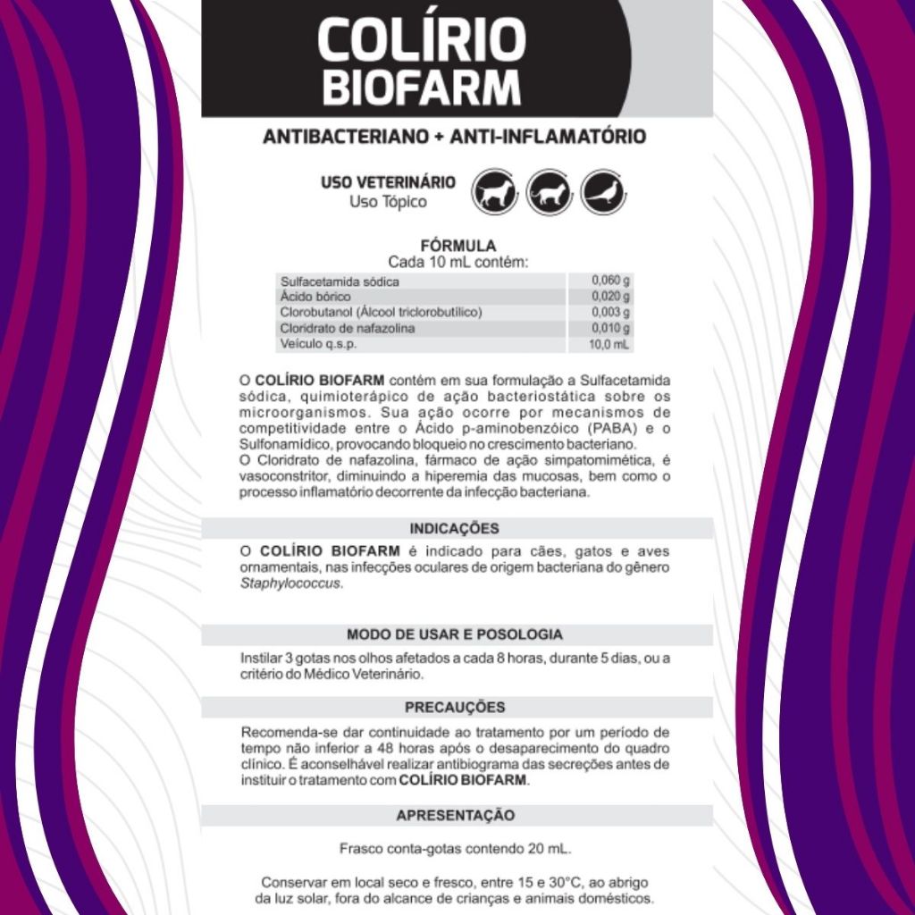 Biofarm Colírio Pet 20mL – Solução Segura Oftálmica Antibacteriana Para Uso Veterinário