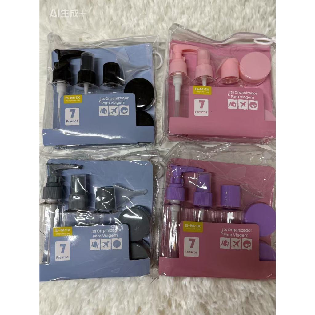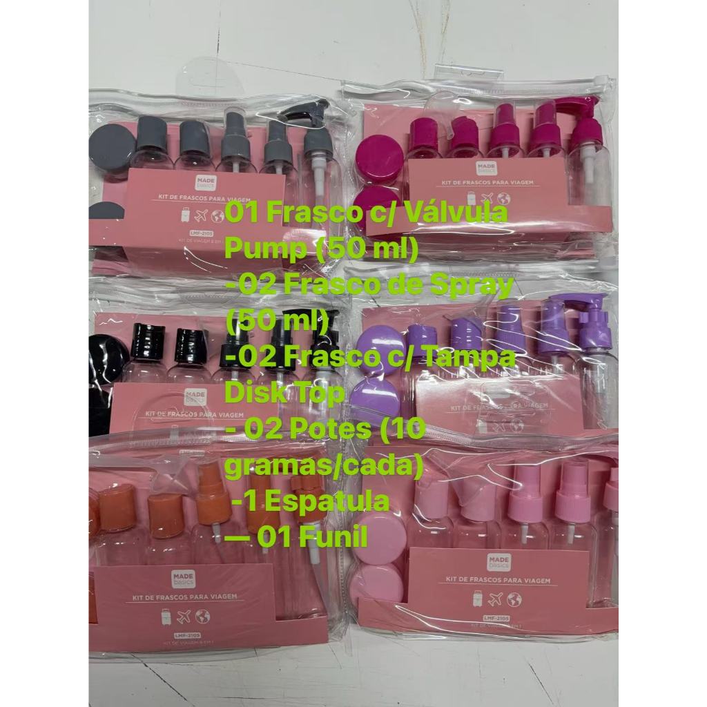Kit Viagem Higiene Frascos Spray Portatil Uso em Geral Para Creme Shampoo Gel Perfume Alcool 8/9 Pçs—