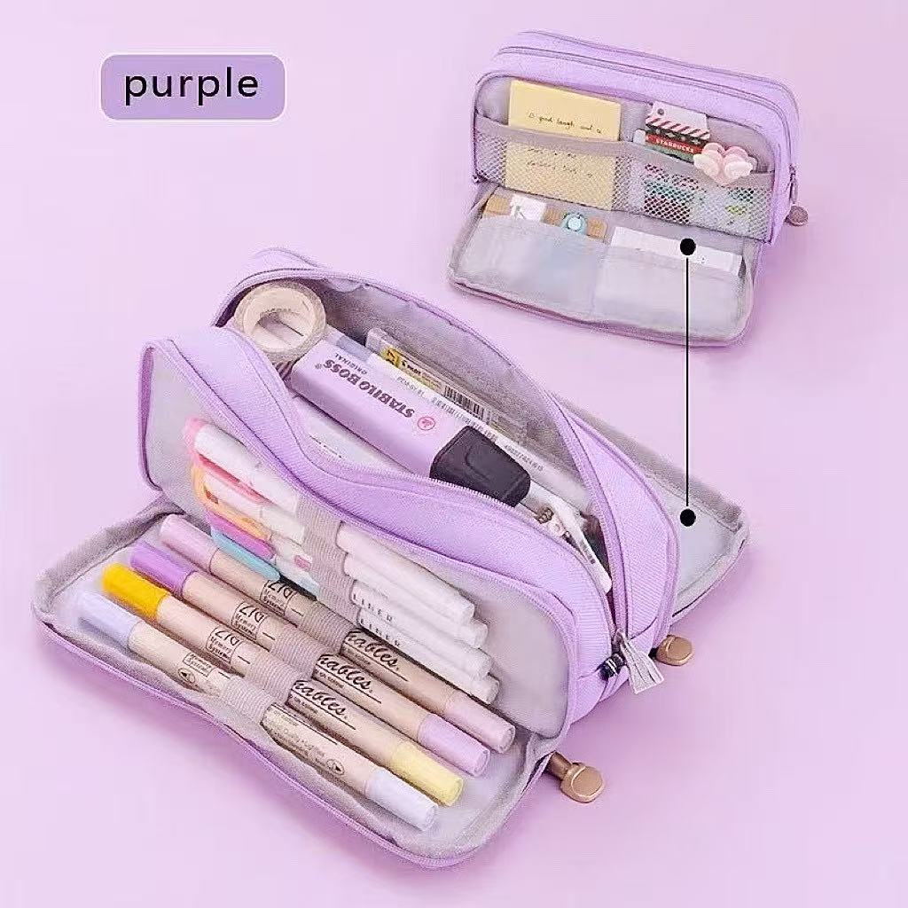 Estojo De Lápis De Tecido De Camada Dupla Para Escritório--2102