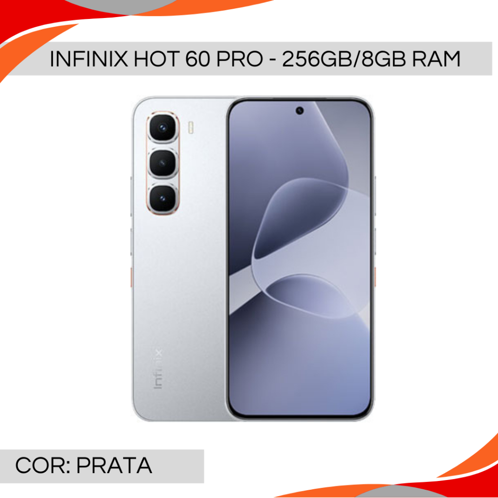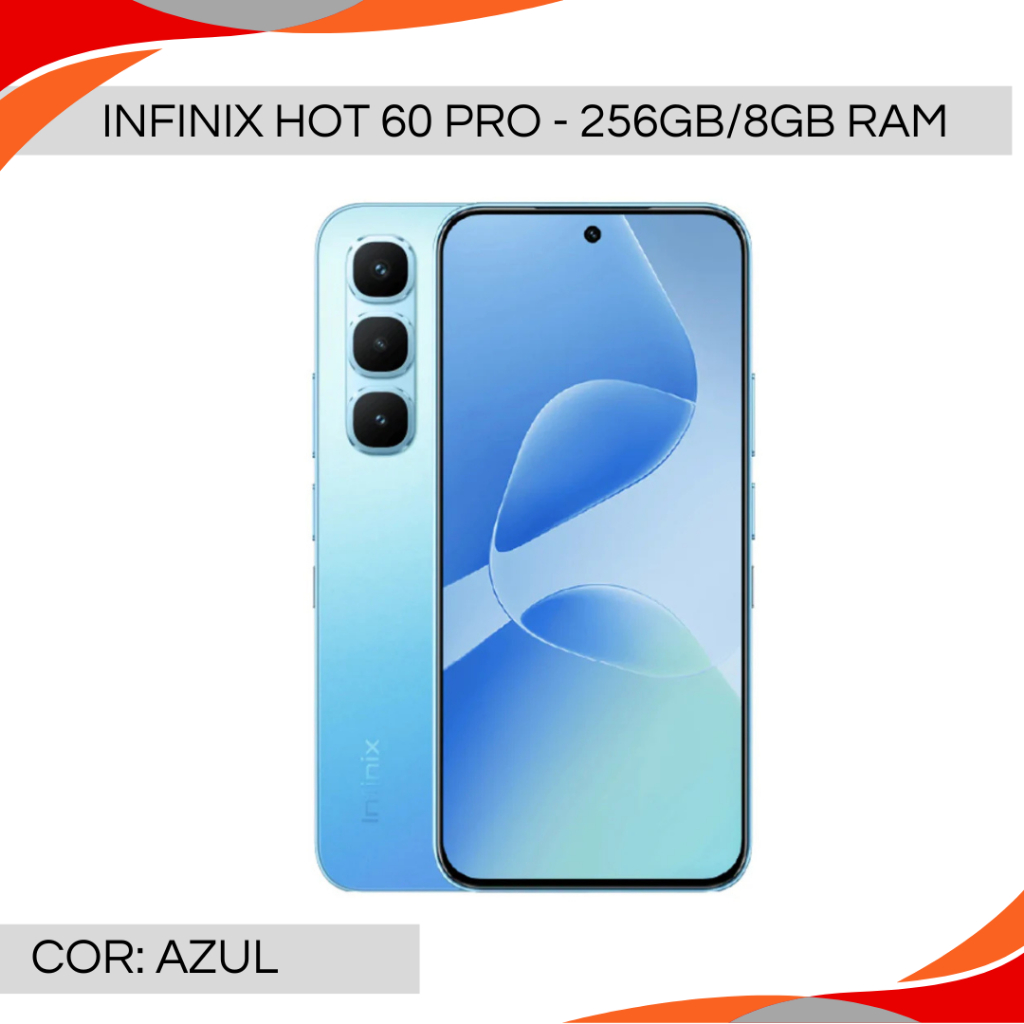 Infinix Hot 60 Pro 256GB/8GB RAM, Versão Global, Processador MediaTek Helio G200, Câmera 50MP Bateria 5160mAh