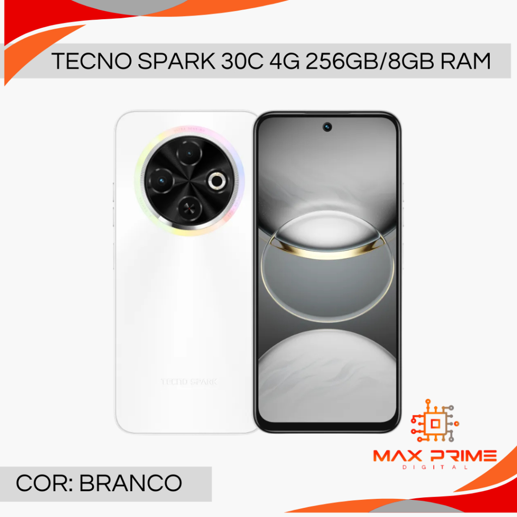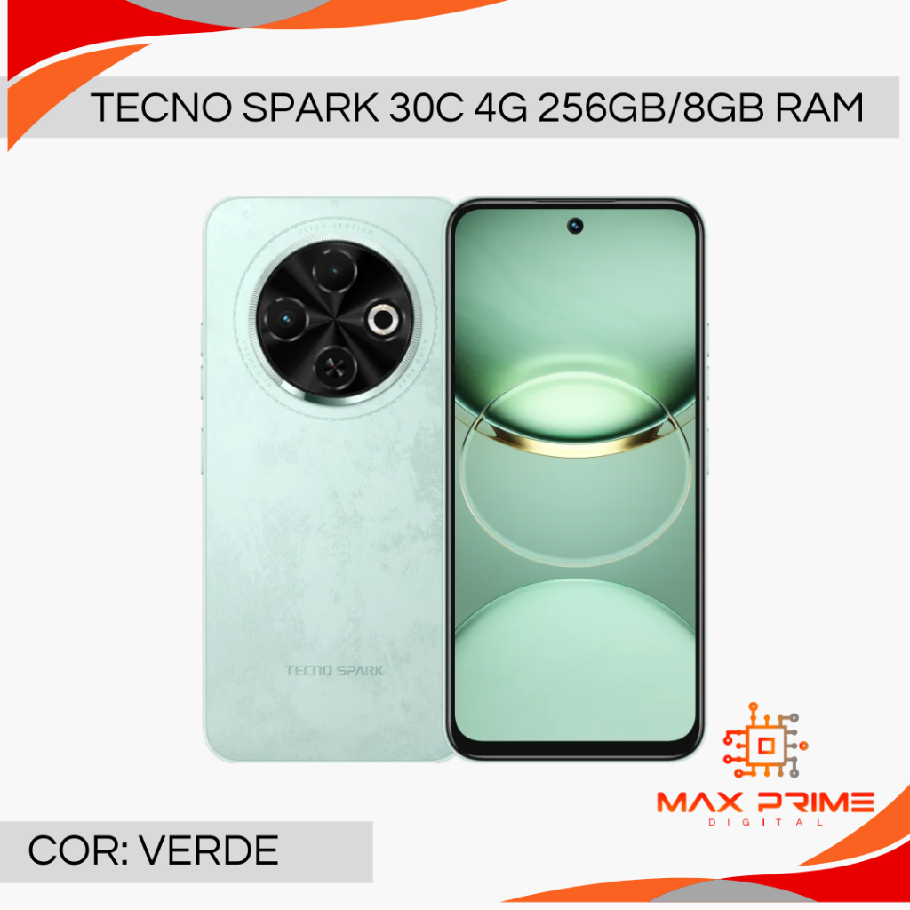Tecno Spark 30C 4G 256GB e 8GB RAM, CÂmera 50MP, Processador Mediatek Hélio G81,, Bateria 5000mAh, Versão Global