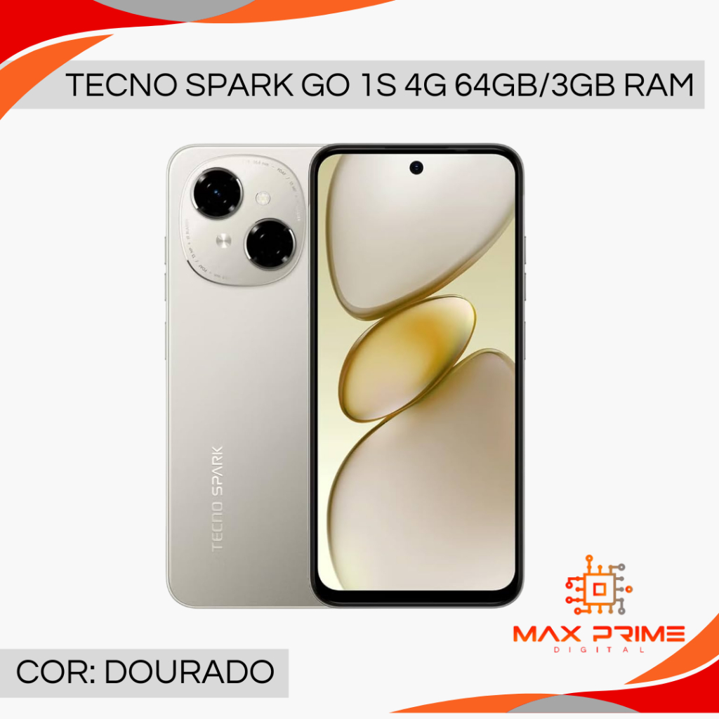 Tecno Spark Go 1S 4G Modelo Atualizado 2026, 64GB e 3GB RAM, e Spark Go 1, Bateria 5000MAH, VERSÃO GLOBAL