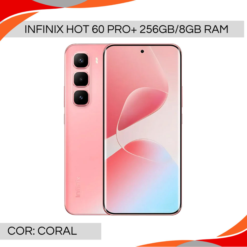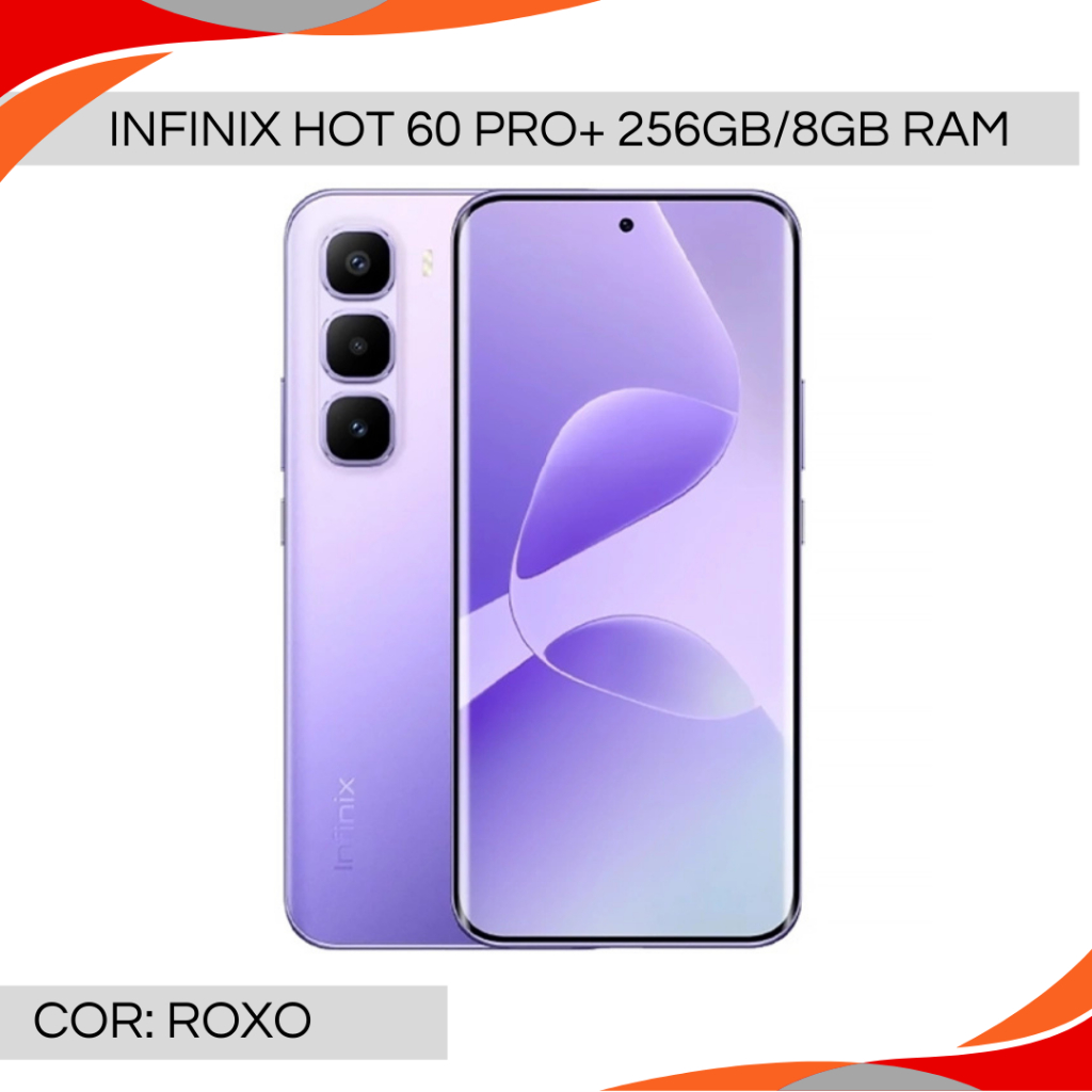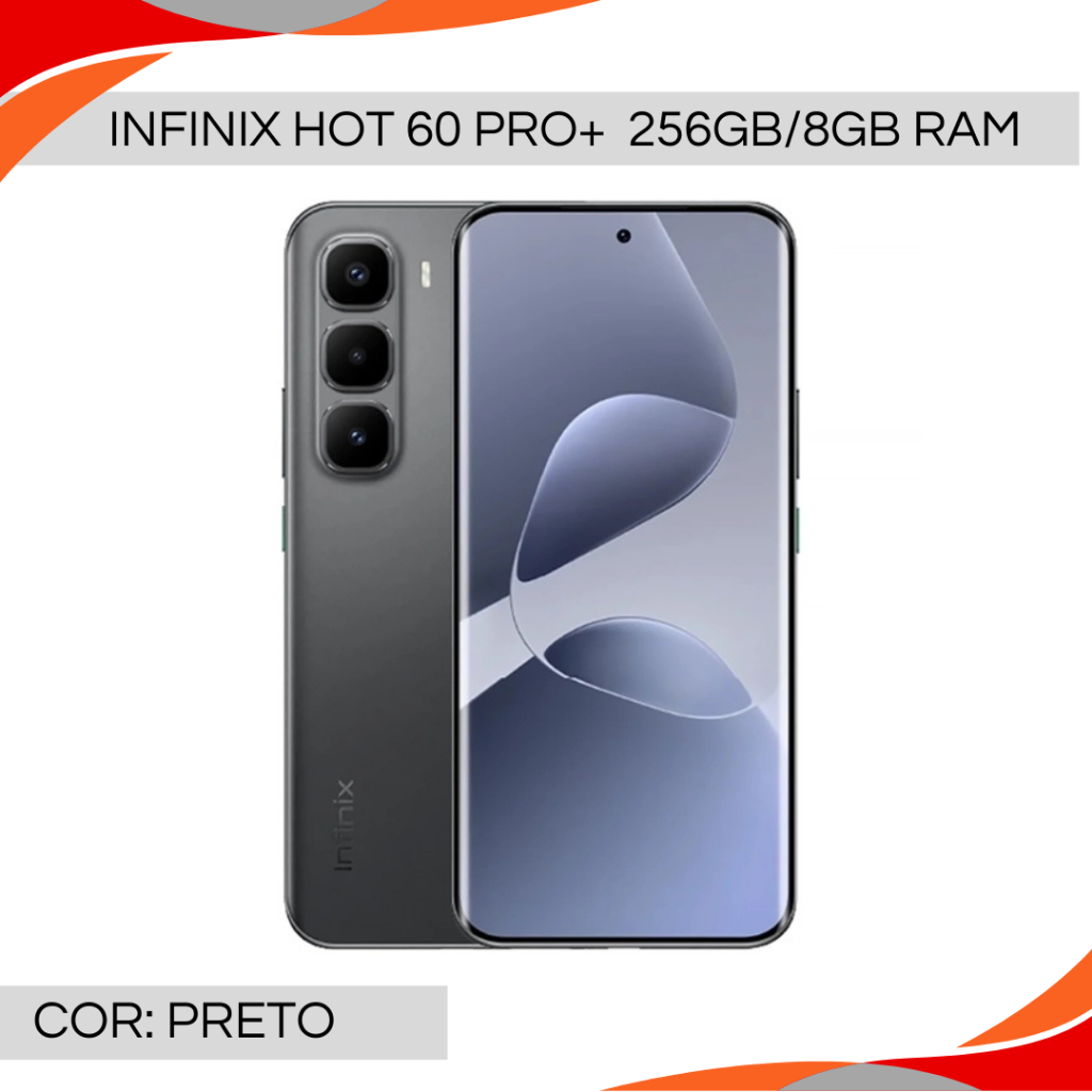 Infinix Hot 60 Pro+ 4G 256GB/8GB RAM, Versão Global, Processador MediaTek Helio G200, Câmera 50MP Bateria 5160mAh