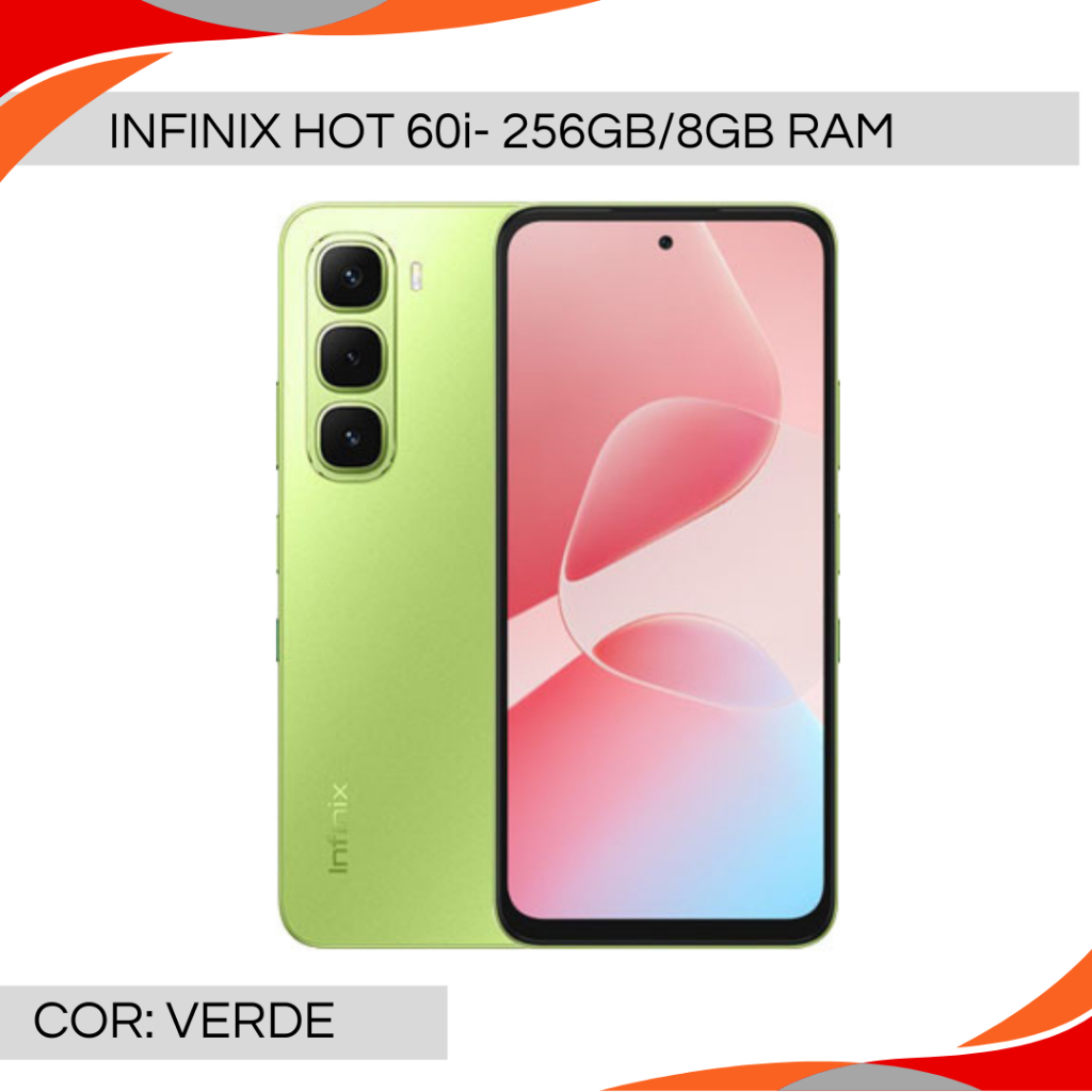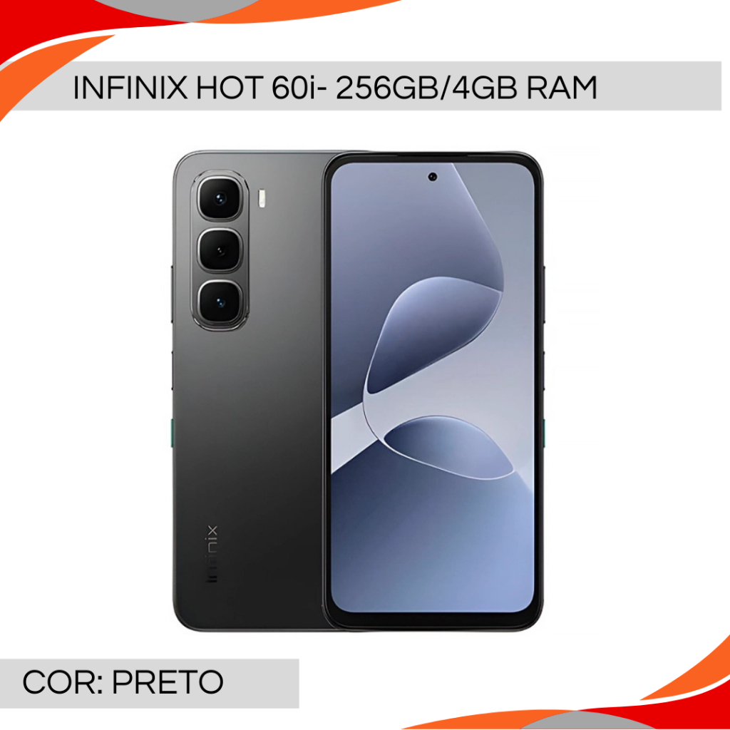 Infinix Hot 60i 4G 256GB Armazenamento e 4GB/8GB RAM, Processador Mediatek G81 Ultimate, Câmera 50MP, Versão Global