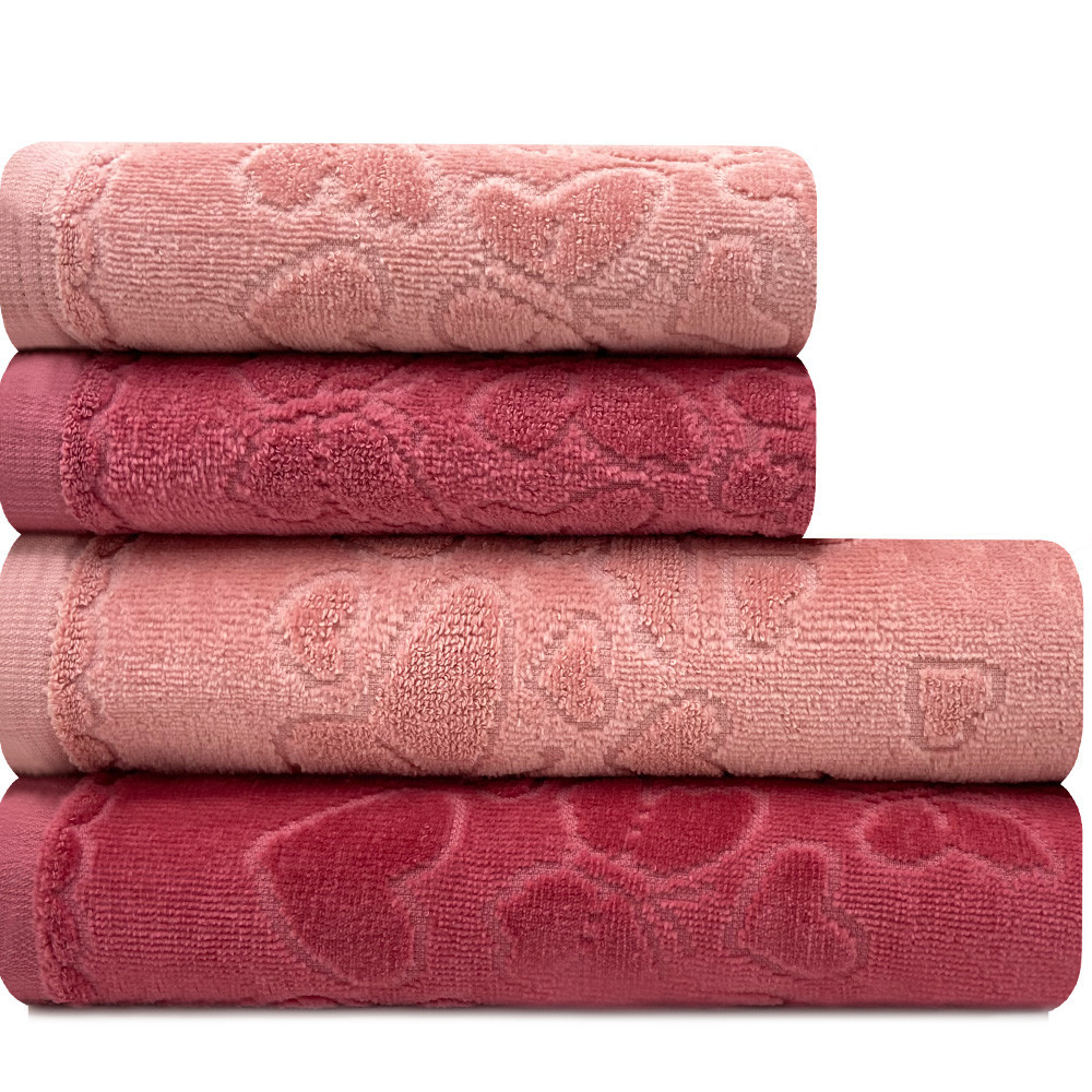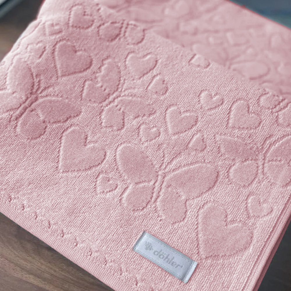 Kit de Toalhas 4 Peças Banho e Rosto Romance 100 Algodão Aveludada Dohler