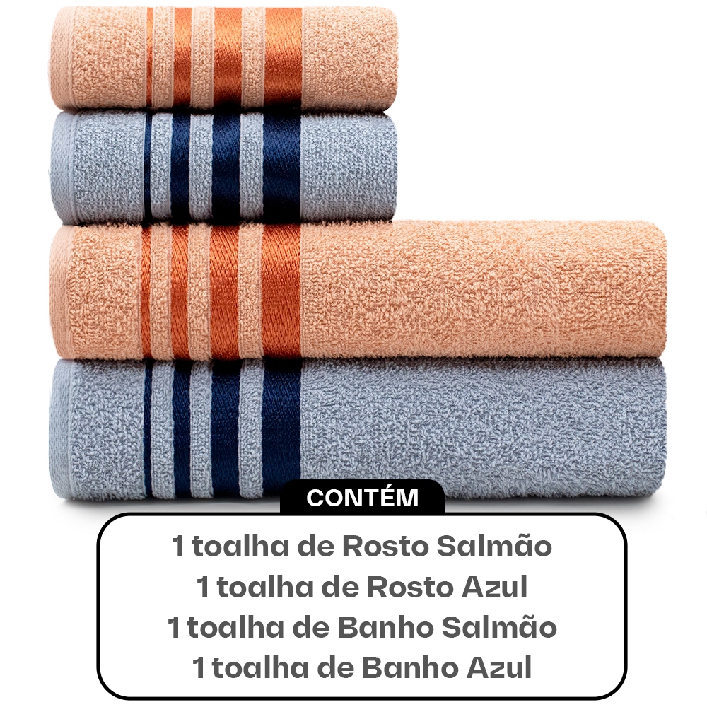 Jogo de Toalhas de Algodão 4 Peças Banho e Rosto Karsten - Emcompre