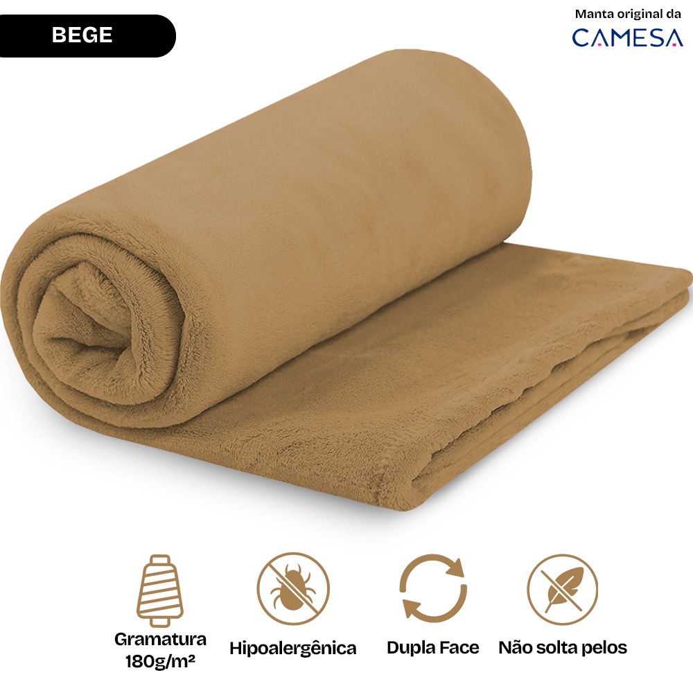 Manta Cobertor Solteiro 150x220cm Microfibra Soft Macia Camesa