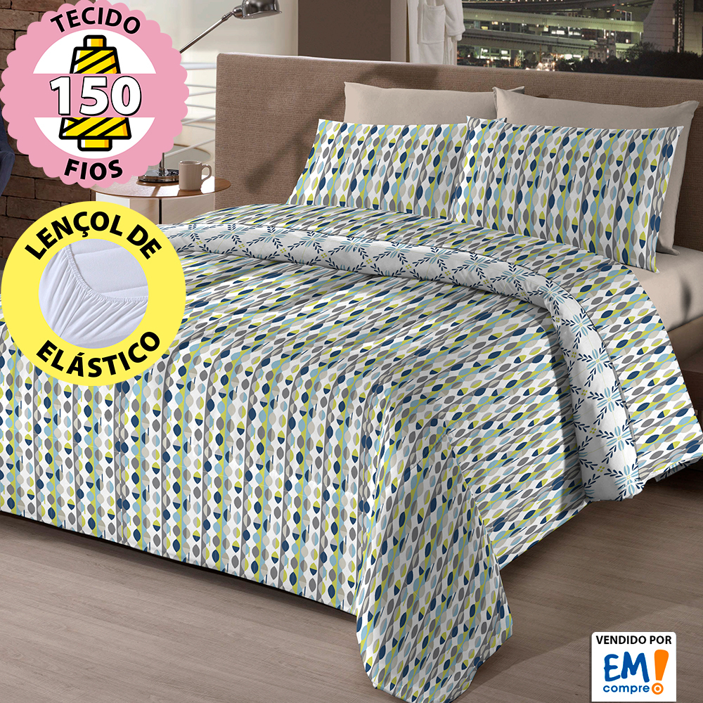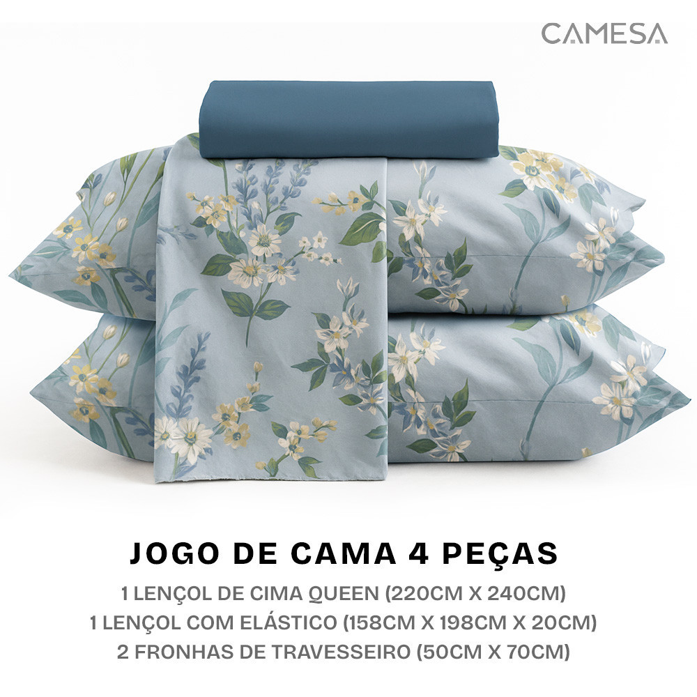 Jogo De Cama Lençol Queen 4 Peças 150 Fios Antialérgico Camesa - Emcompre