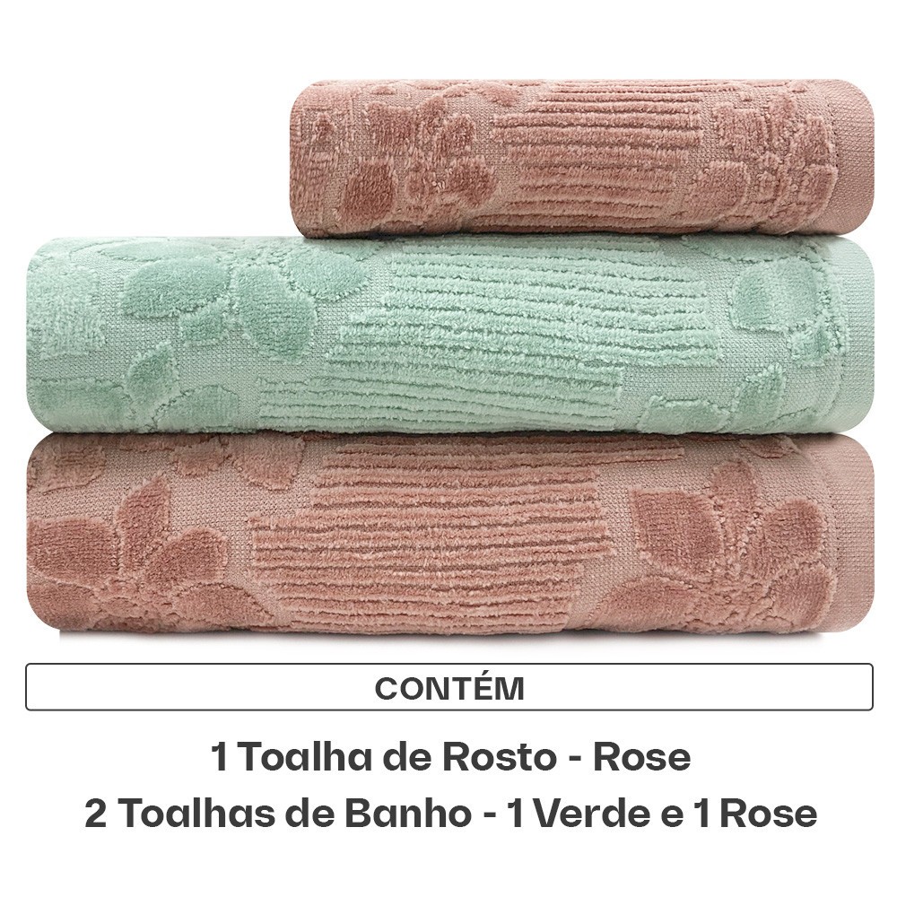 Jogo de Toalhas Lollipop em Algodão Aveludada 3Pçs Banho e Rosto Buddemeyer