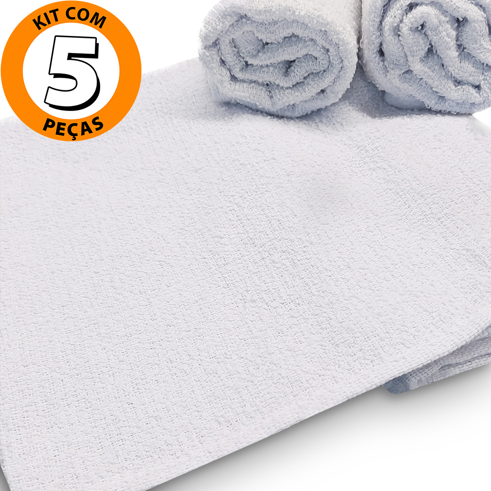 Kit 5 Toalhas de Rosto Branca Salão de Beleza 100% Algodão 40 x 65 cm Beira Rio