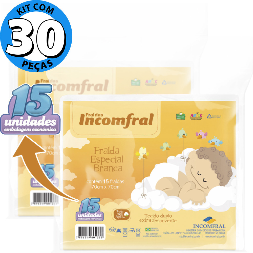 Kit 30 Fraldas de Pano 100 Algodão 70X70cm Berçário Incomfral
