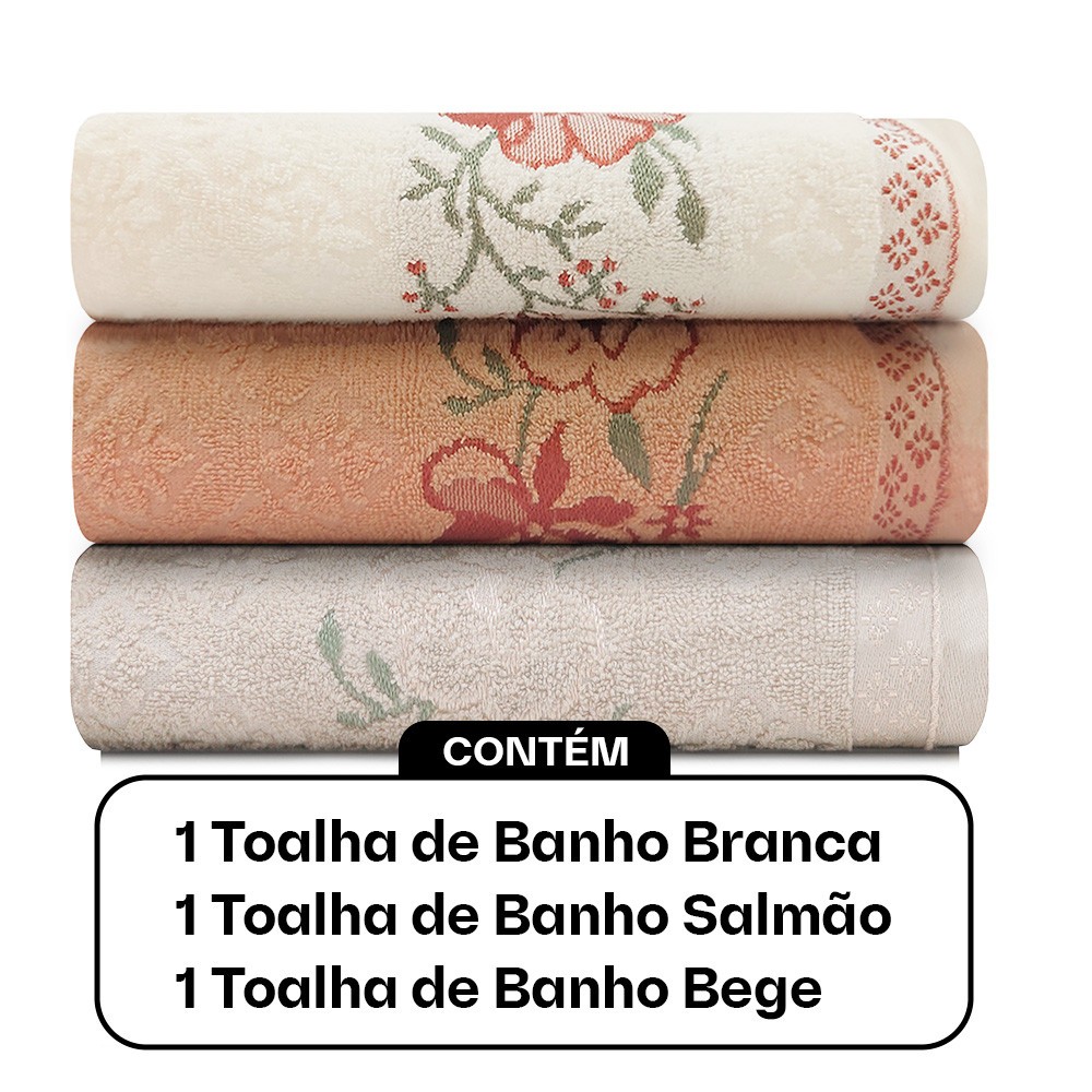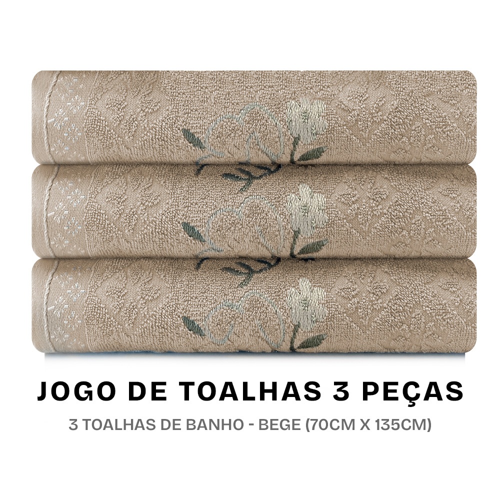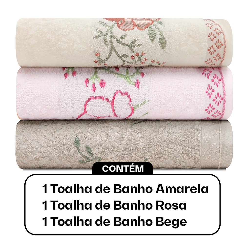 Jogo de Toalhas de Banho Yuna 100% Algodão 3 Peças Karsten
