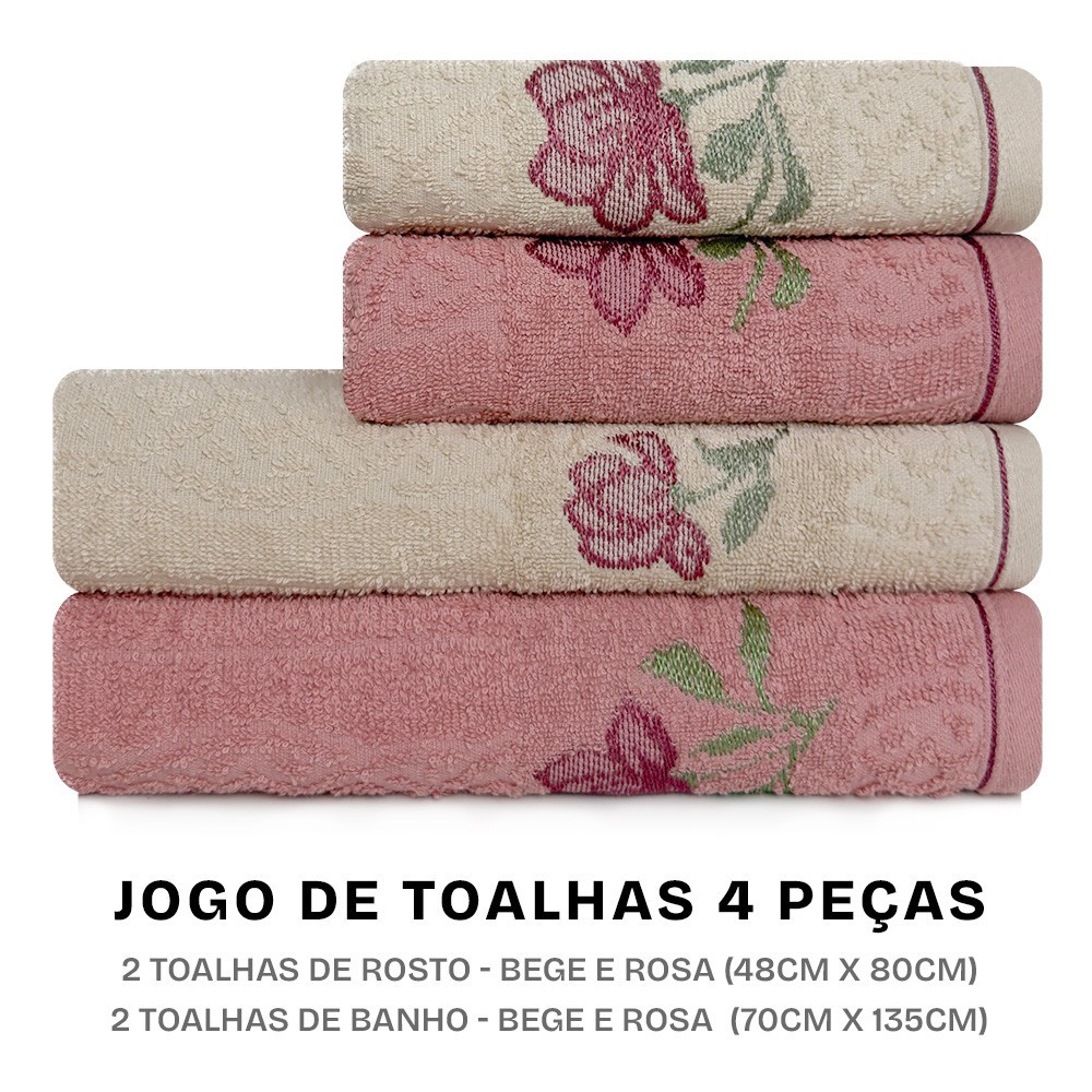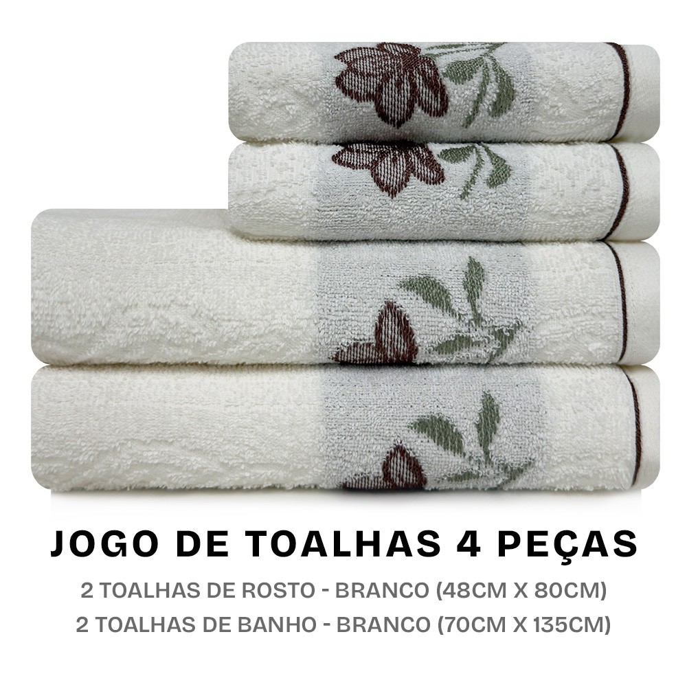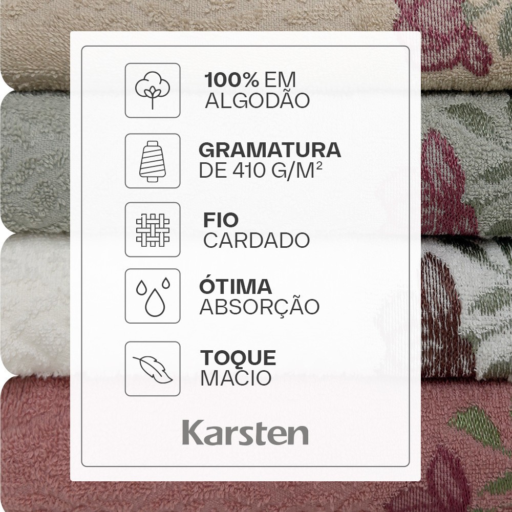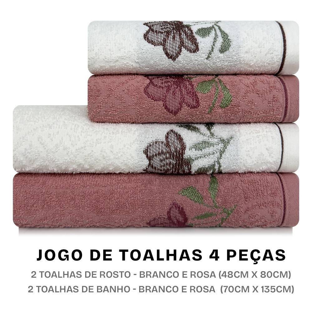 Jogo de Toalhas Encanto com 4 Peças Banho e Rosto em Algodão Karsten