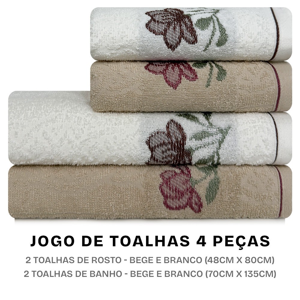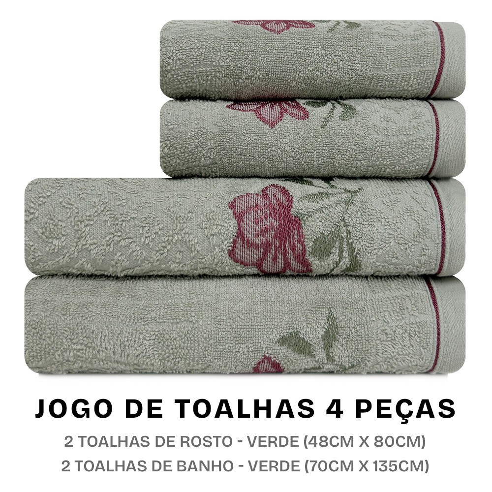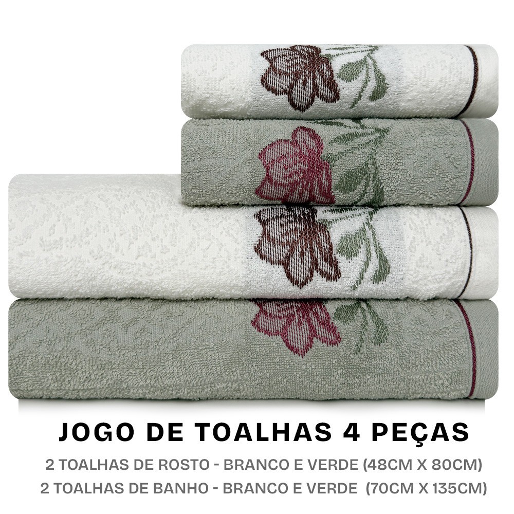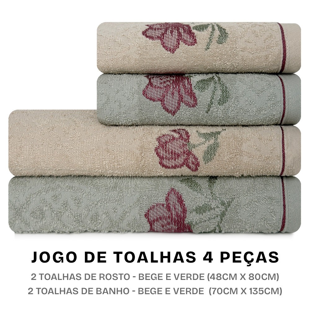 Jogo de Toalhas Encanto com 4 Peças Banho e Rosto em Algodão Karsten